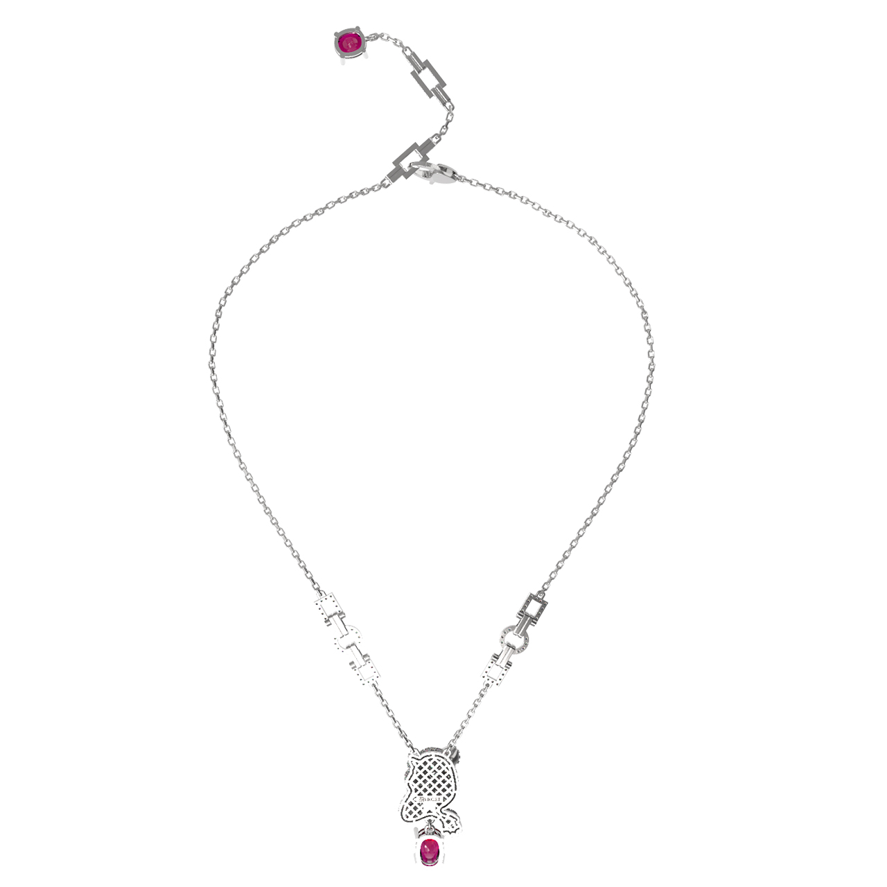 Колье из белого золота c бриллиантами, рубином и изумрудом