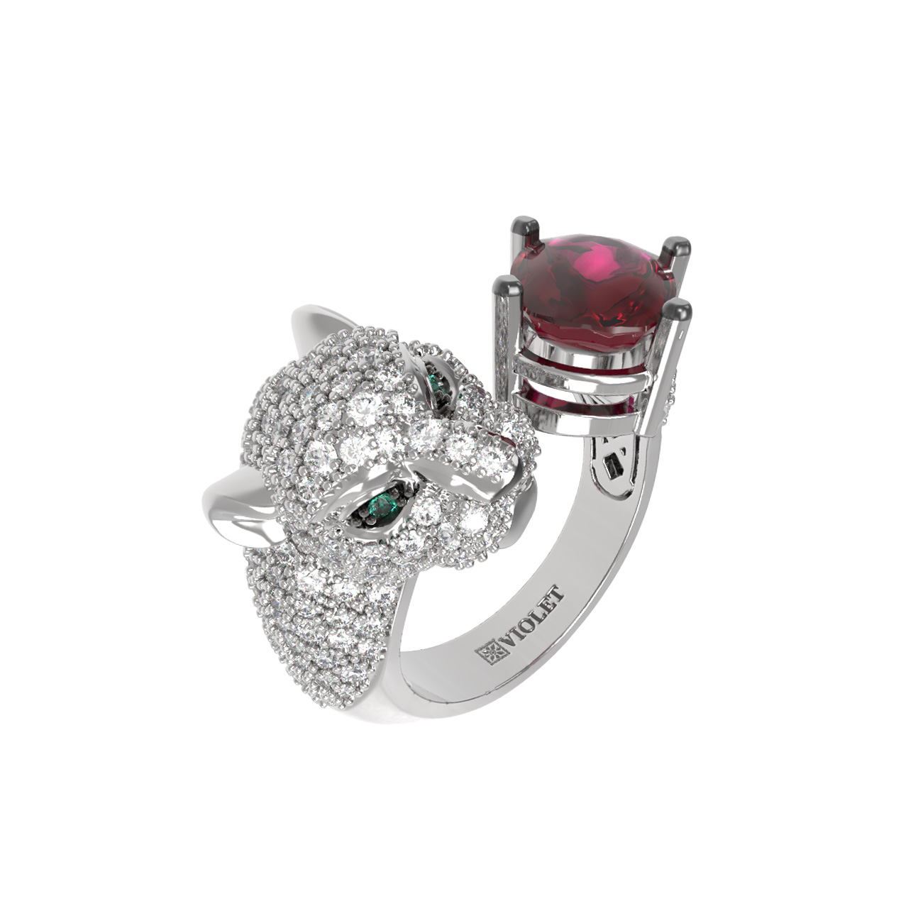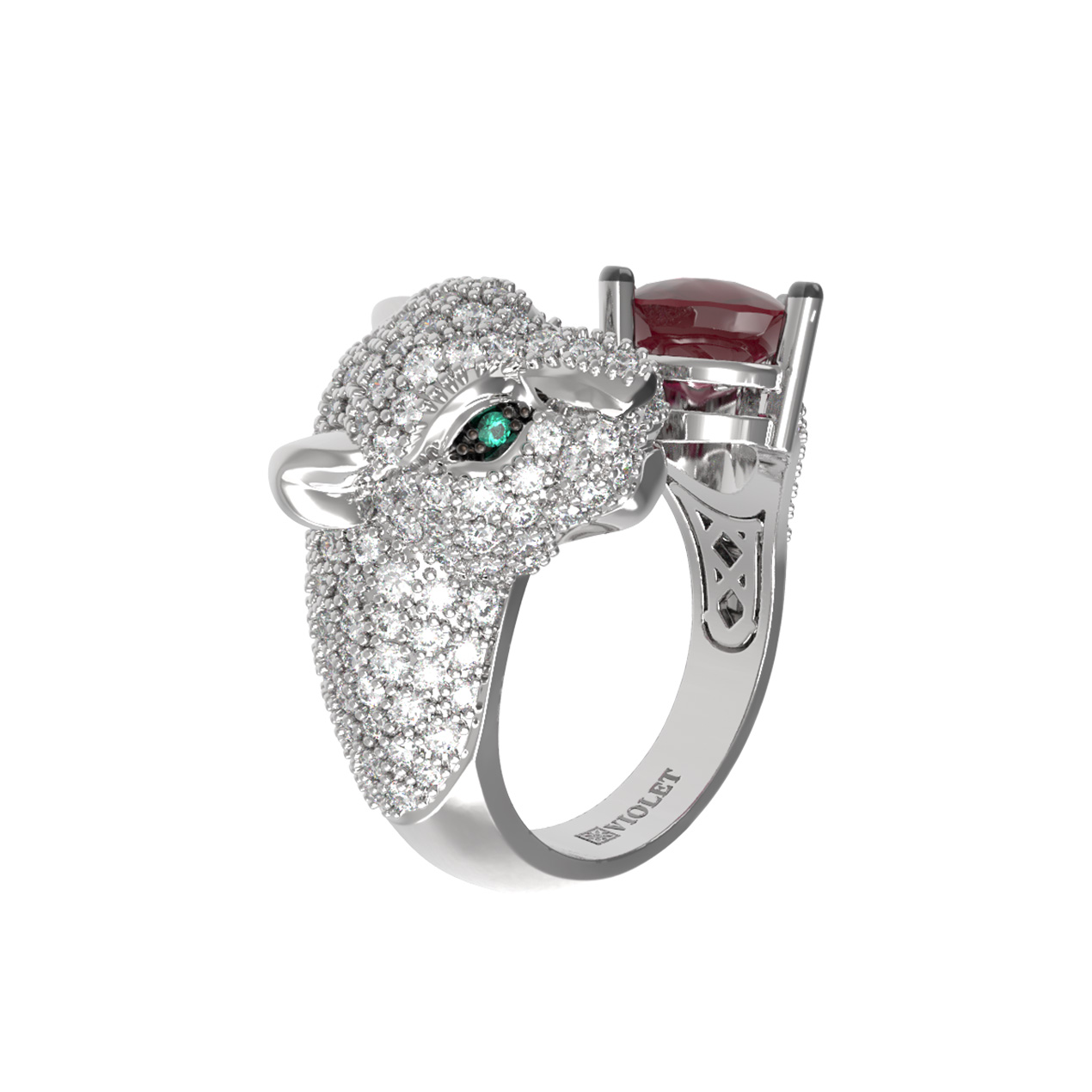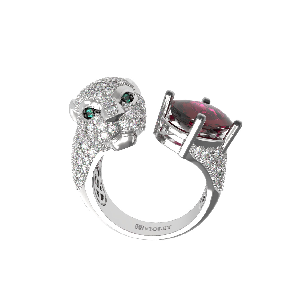 Кольцо из белого золота c бриллиантами, рубином и изумрудом
