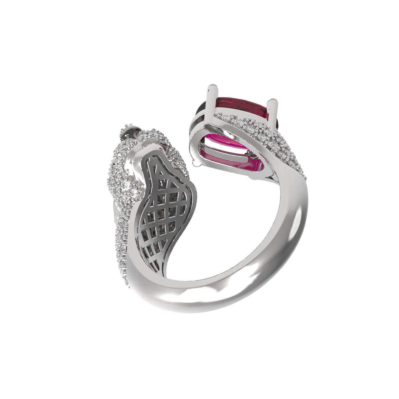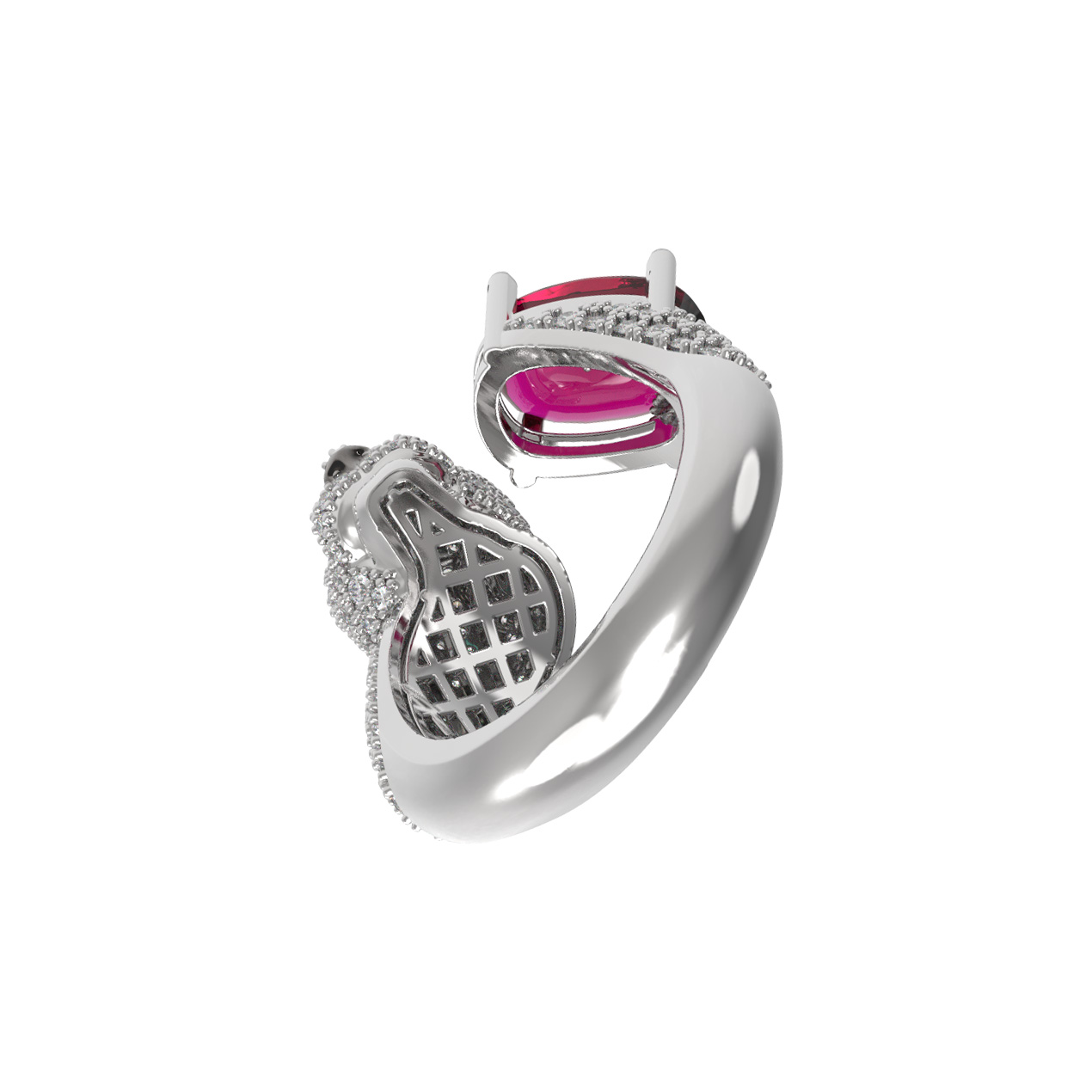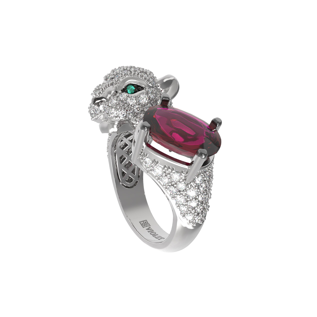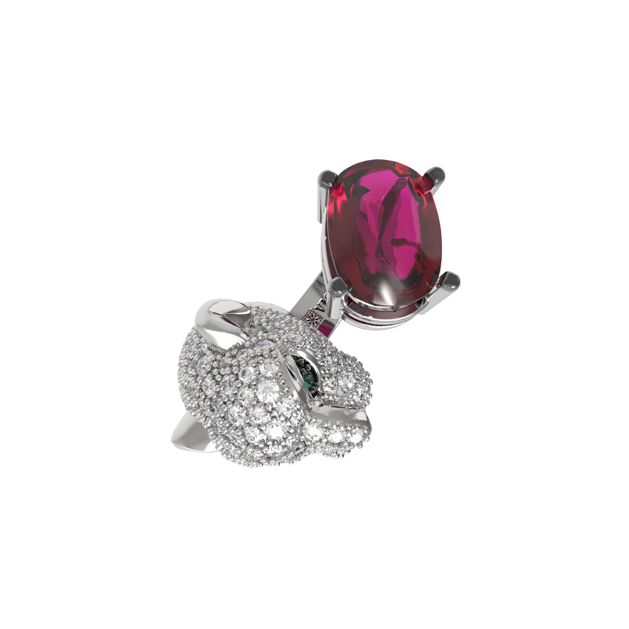 Кольцо из белого золота c бриллиантами, рубином и изумрудом