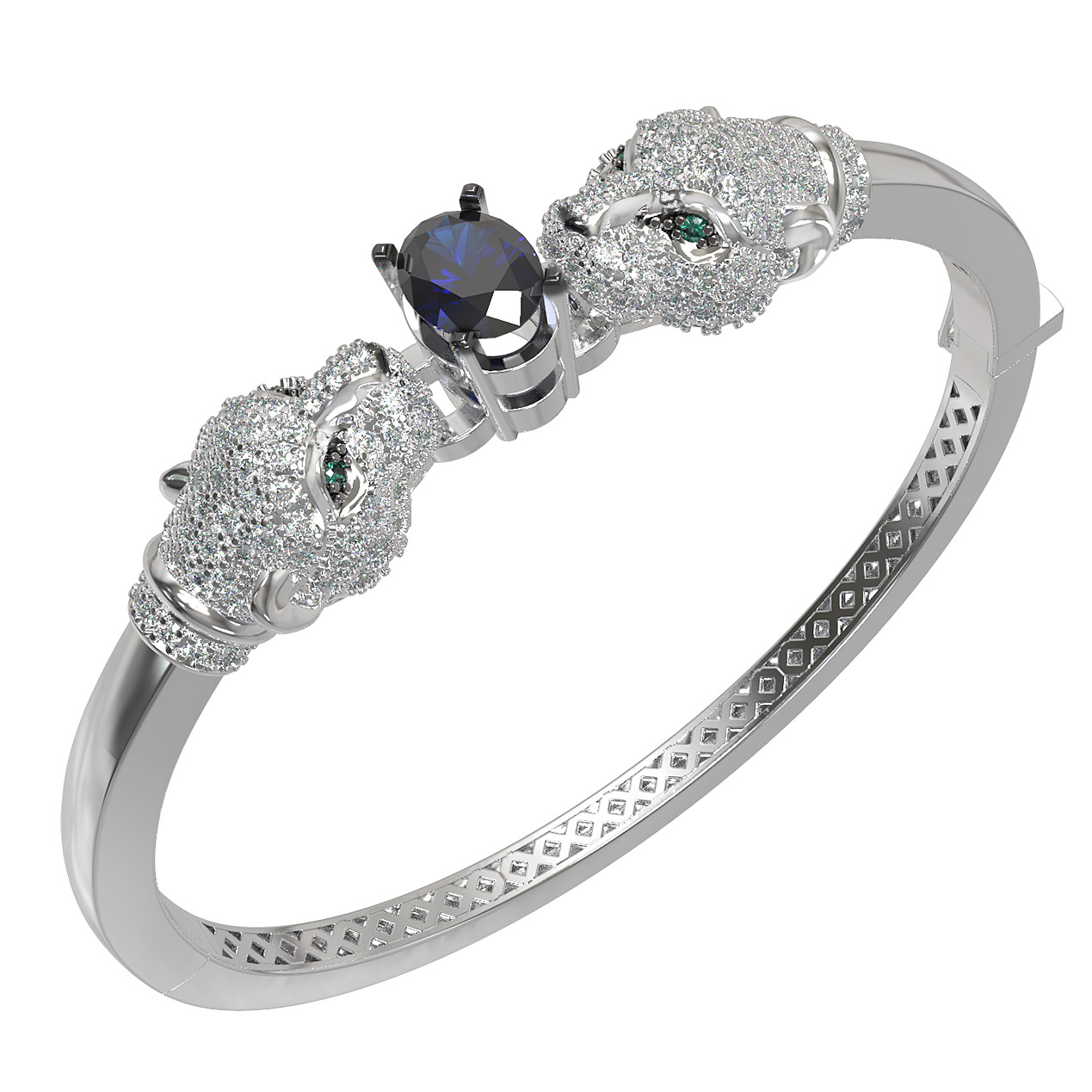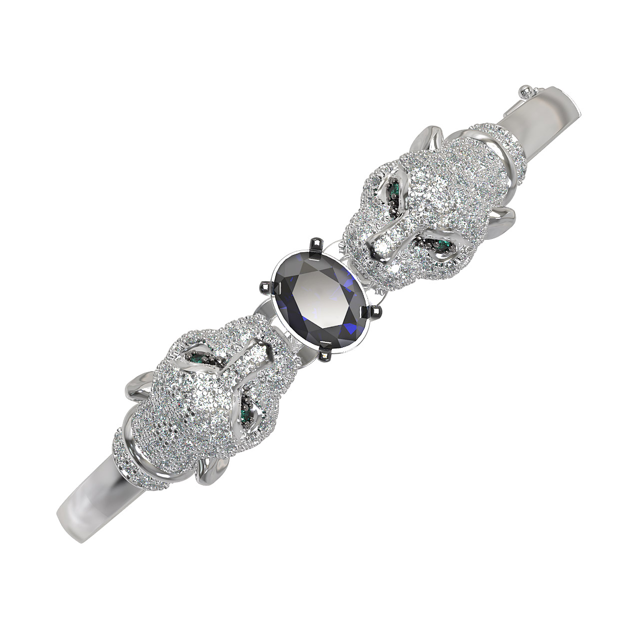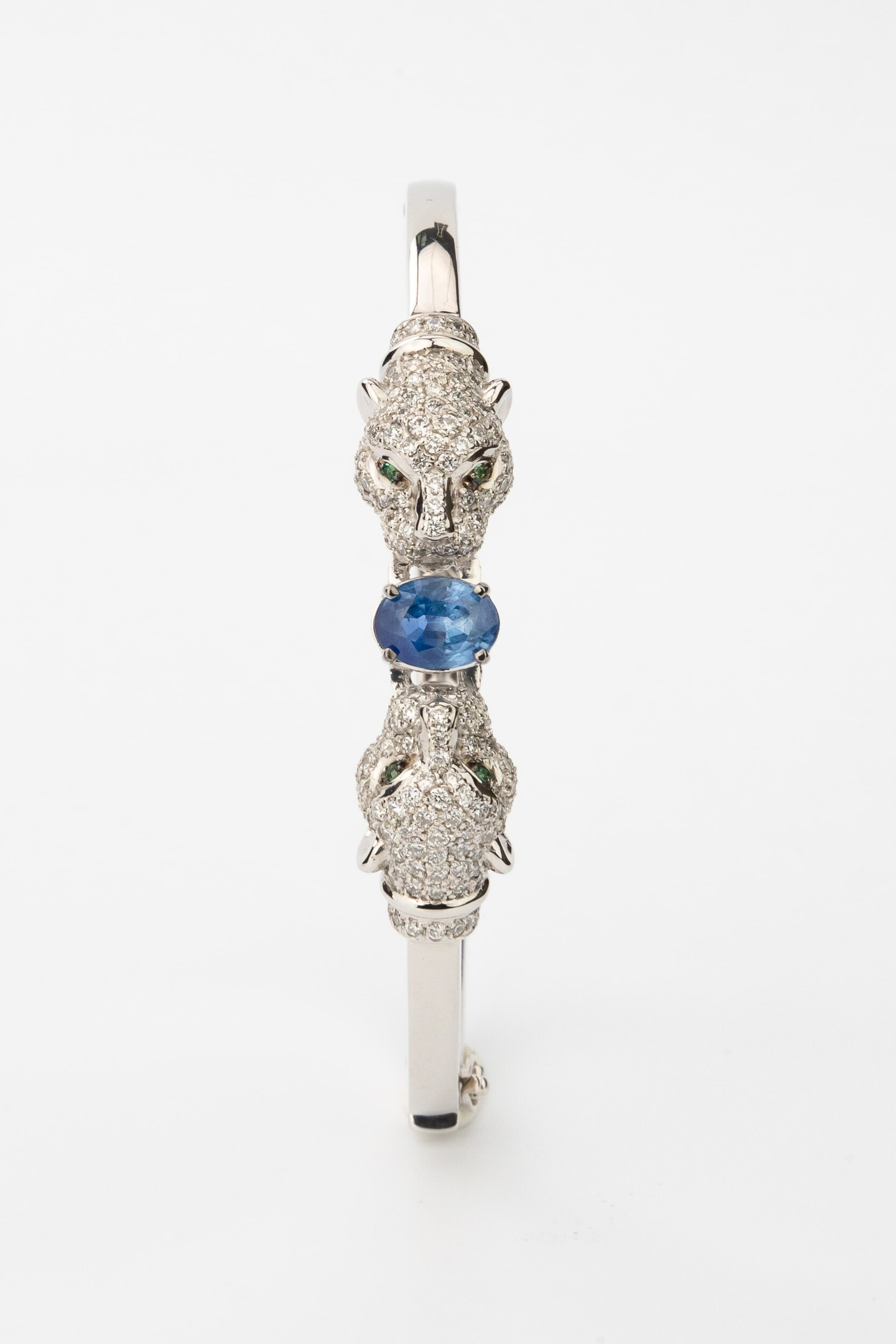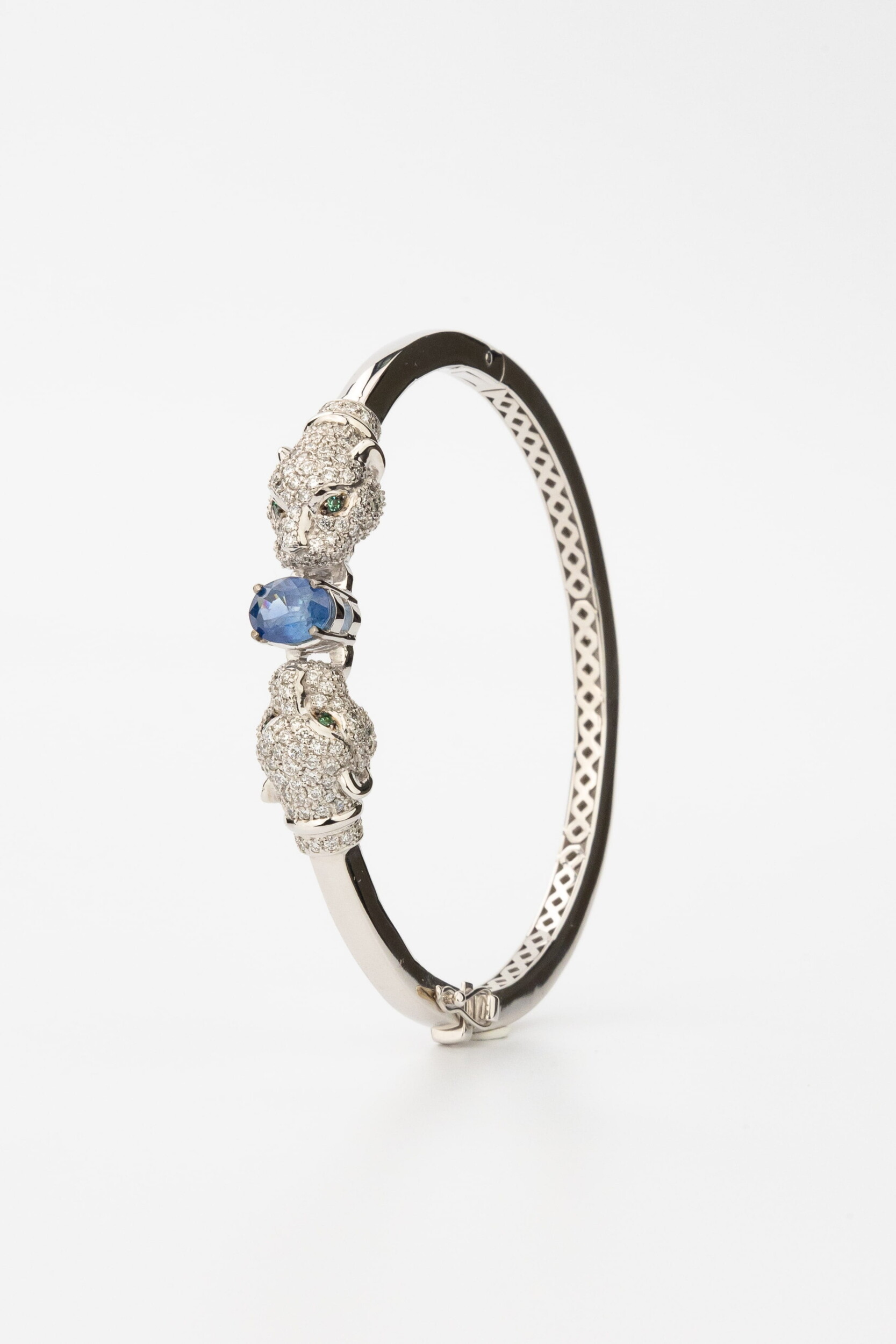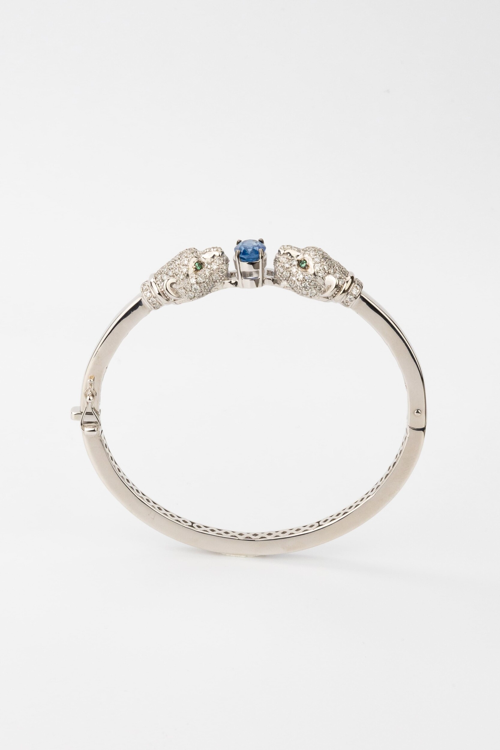 Браслет из белого золота c бриллиантами, сапфиром и изумрудом