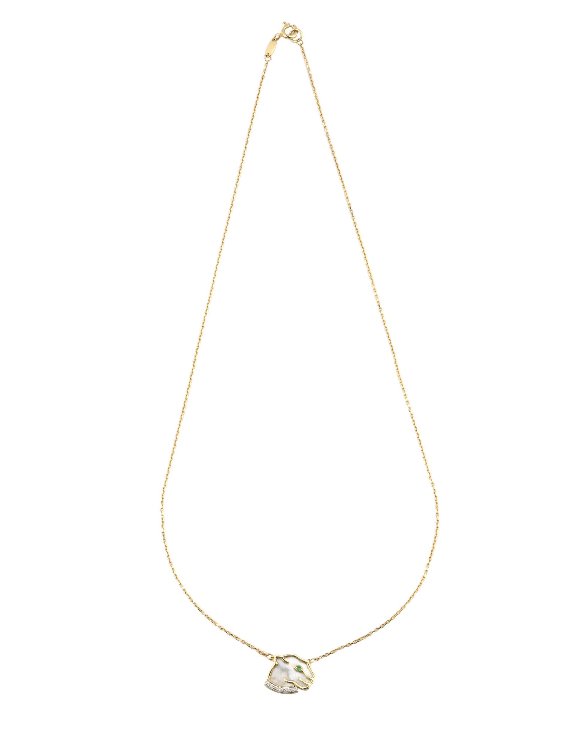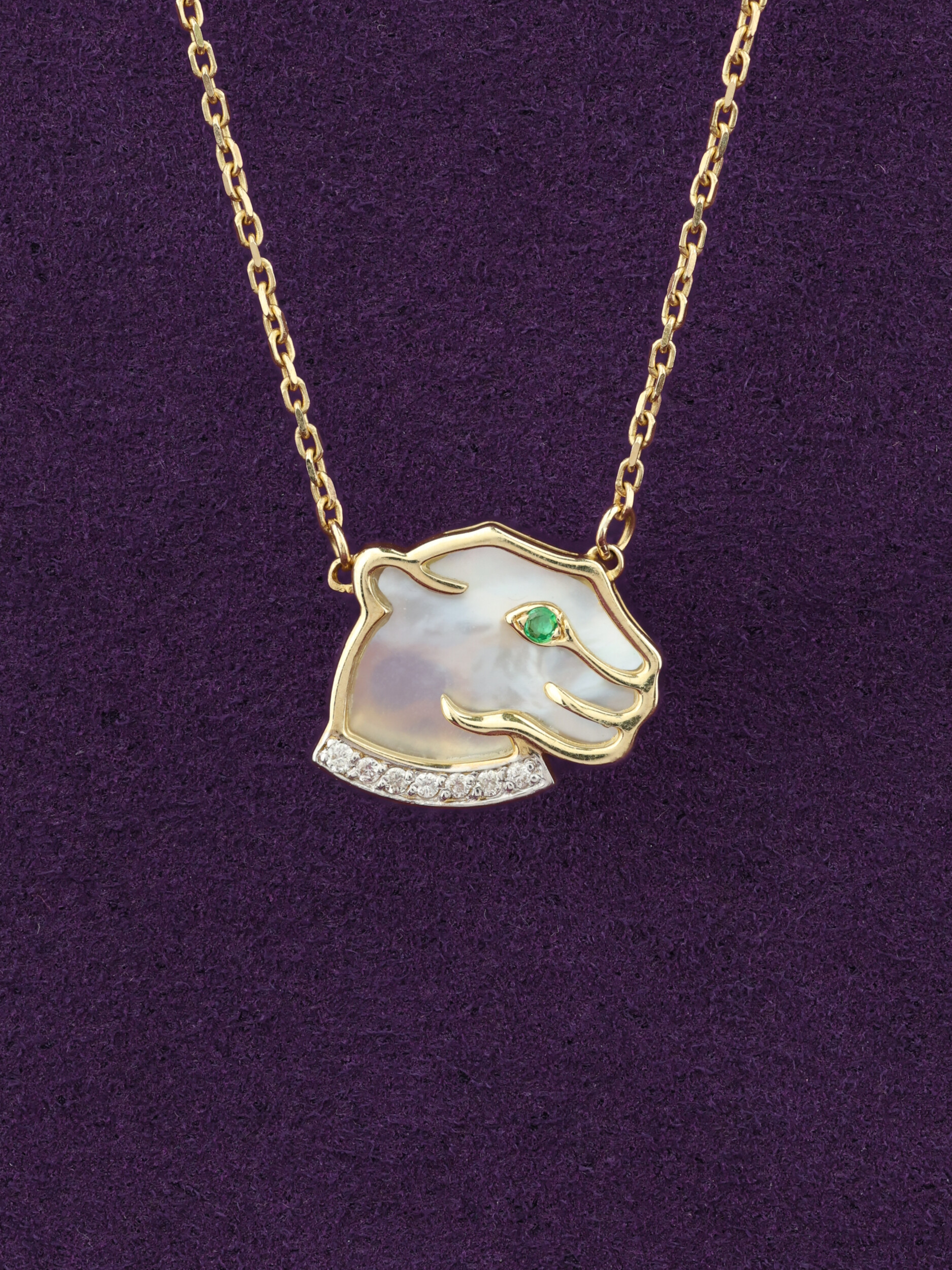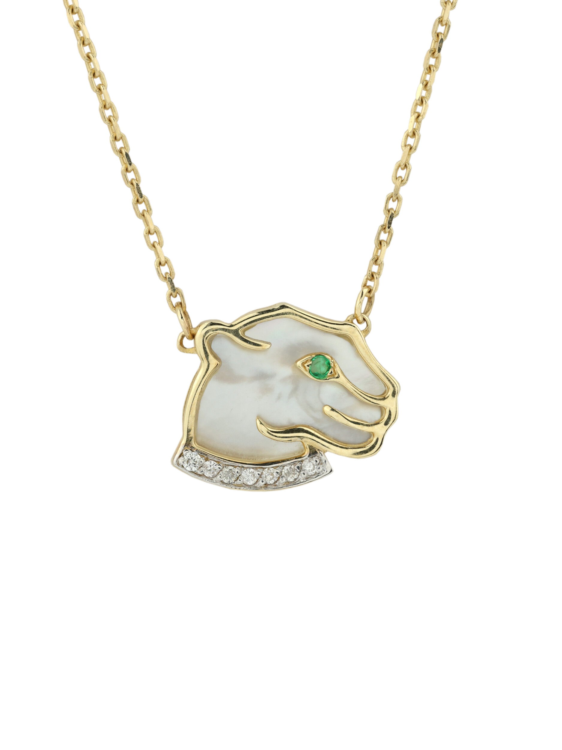Колье из лимонного золота c бриллиантами, изумрудом и перламутром