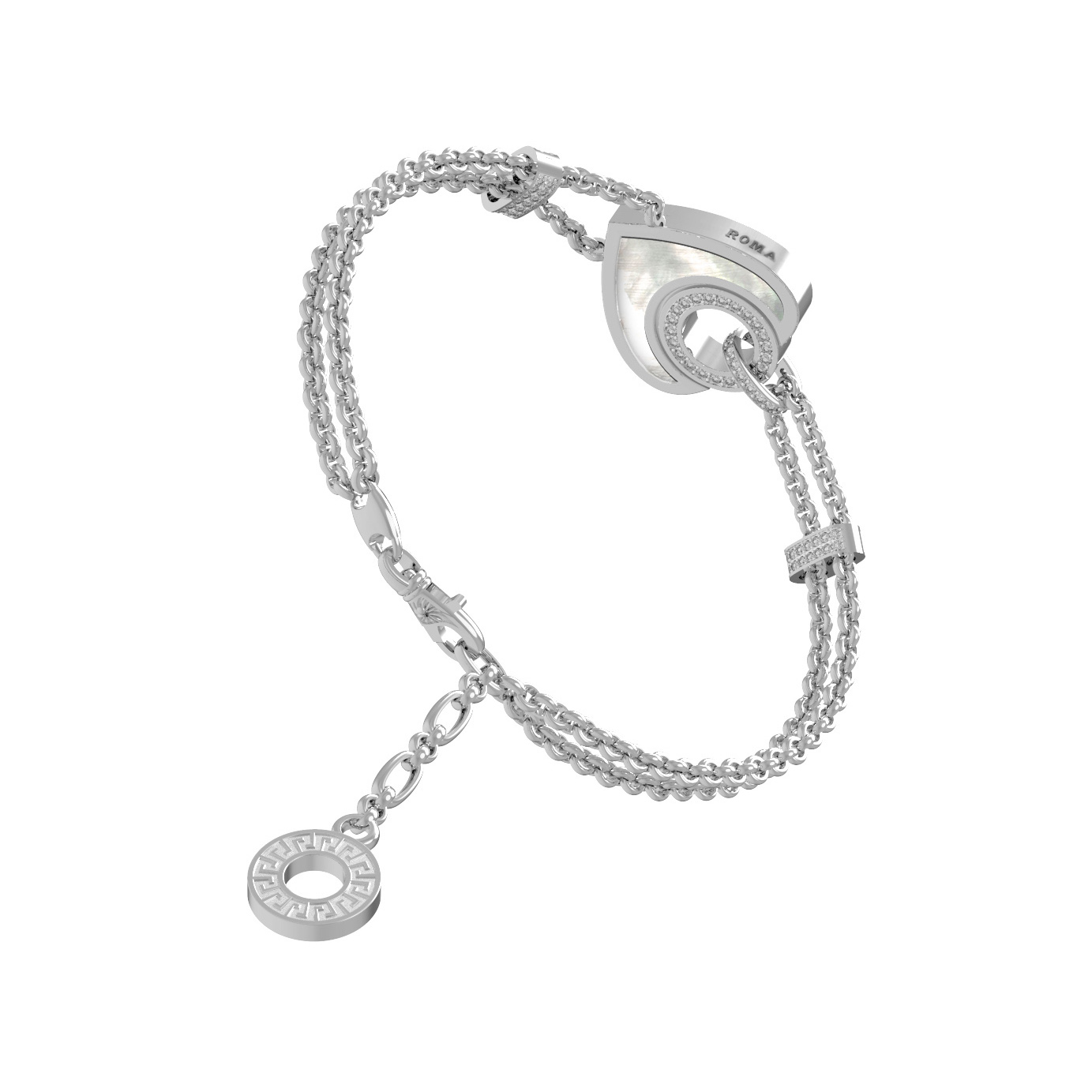 Браслет из белого золота c бриллиантами, ониксом и перламутром