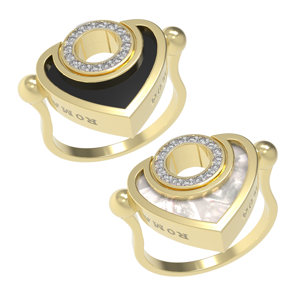 Кольцо из лимонного золота c бриллиантами, ониксом и перламутром