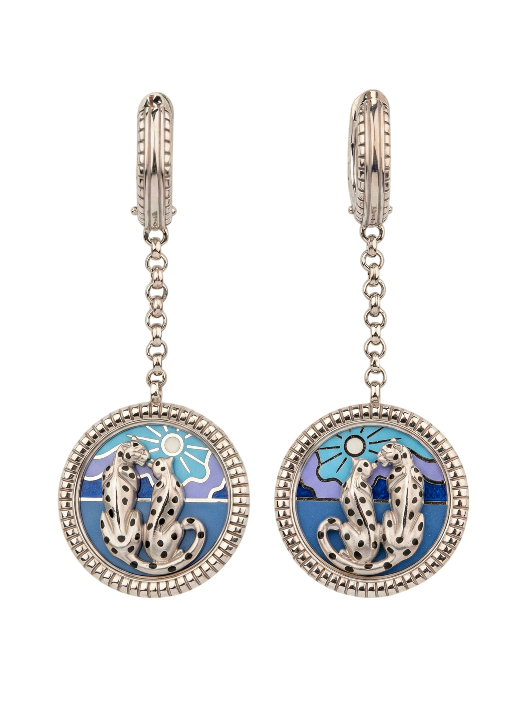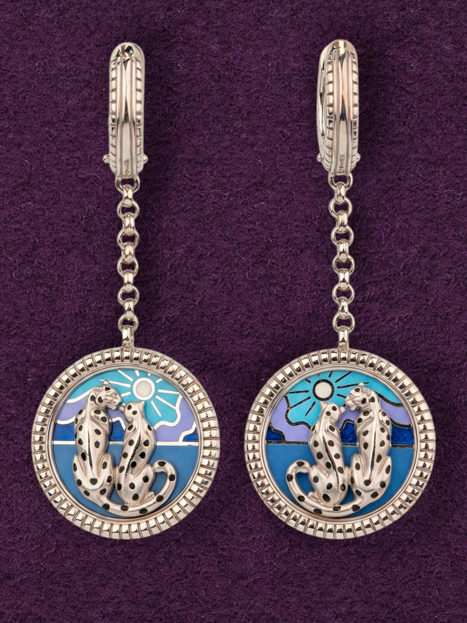 Серьги из белого золота c эмалью