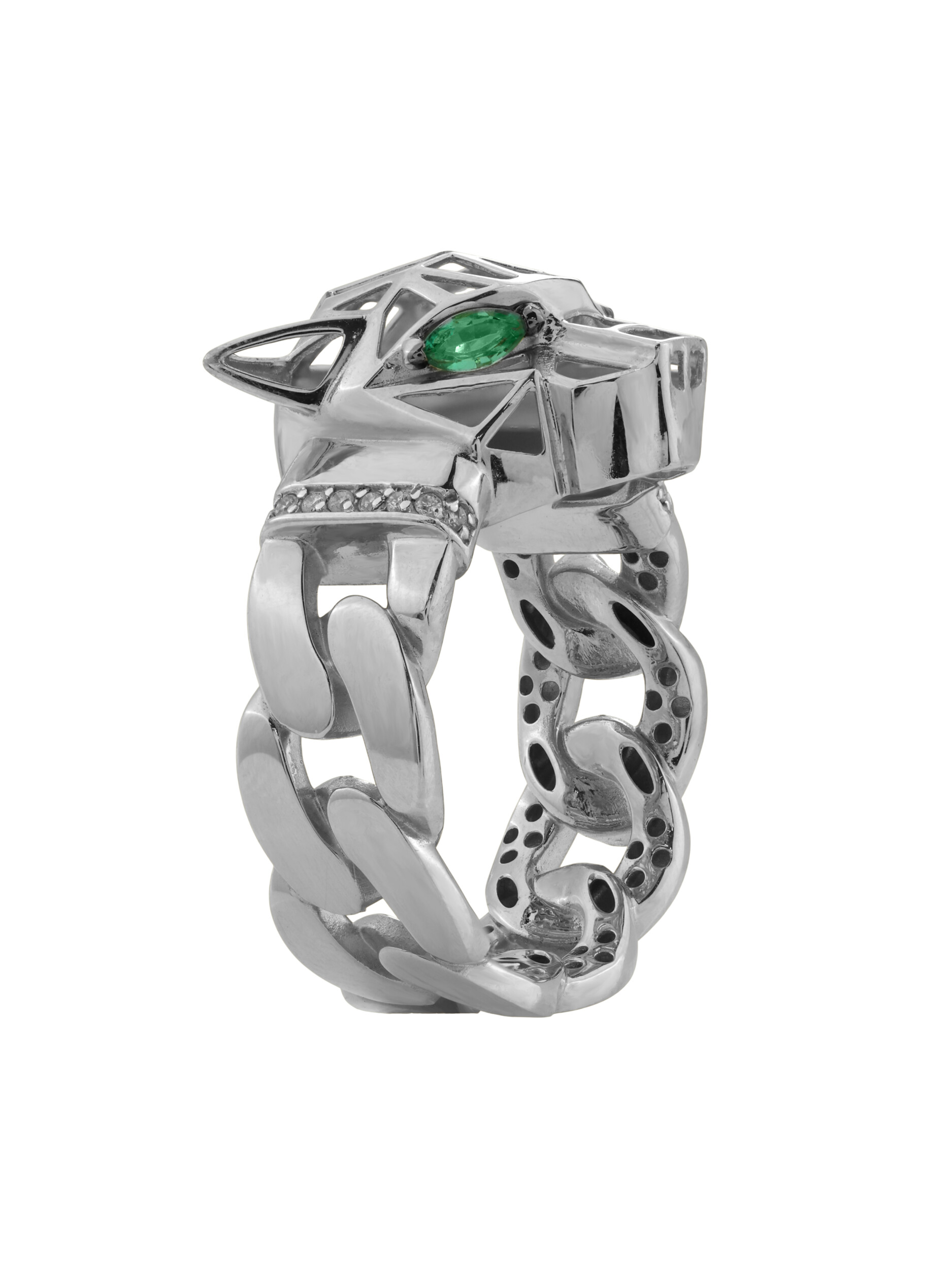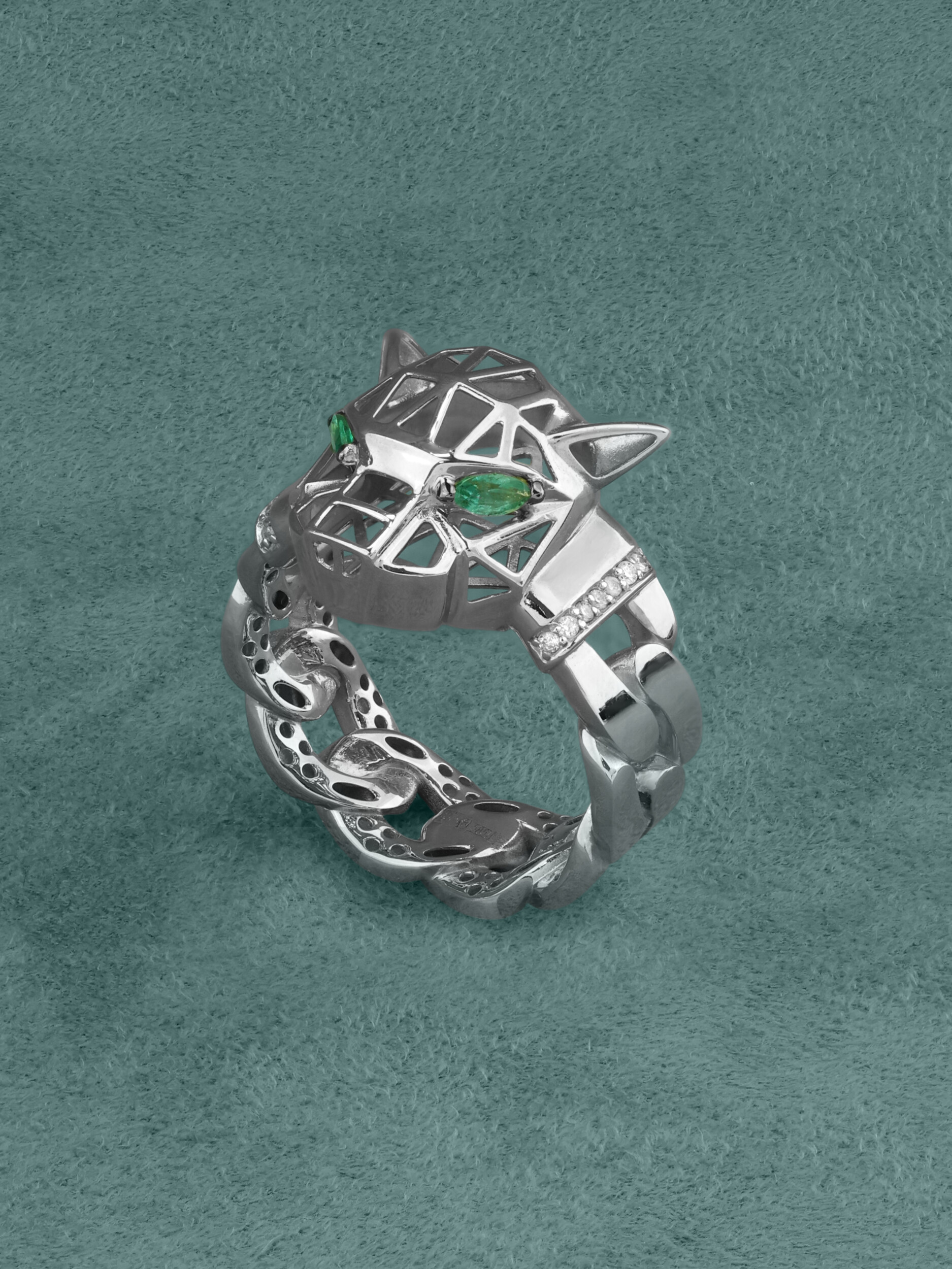 Кольцо из белого золота c бриллиантами и изумрудом