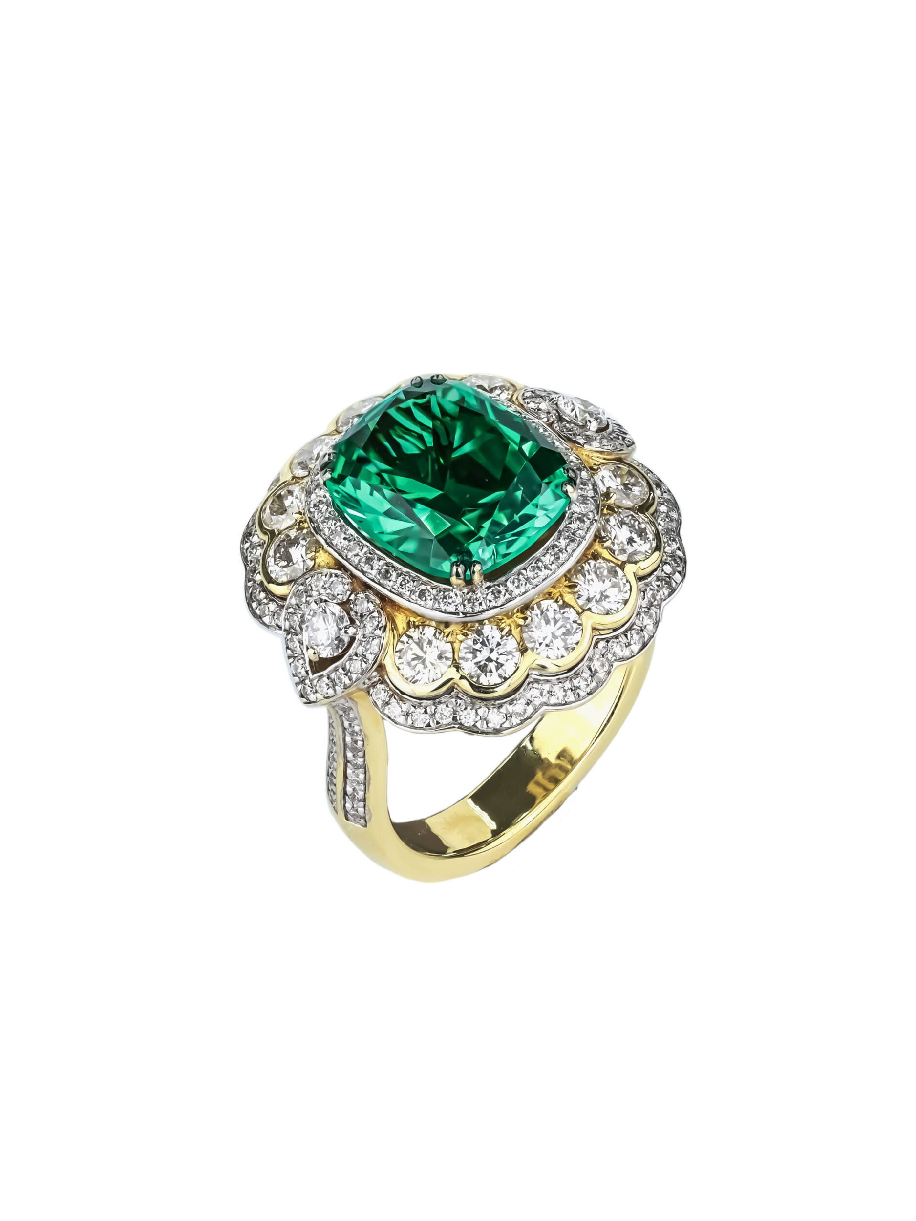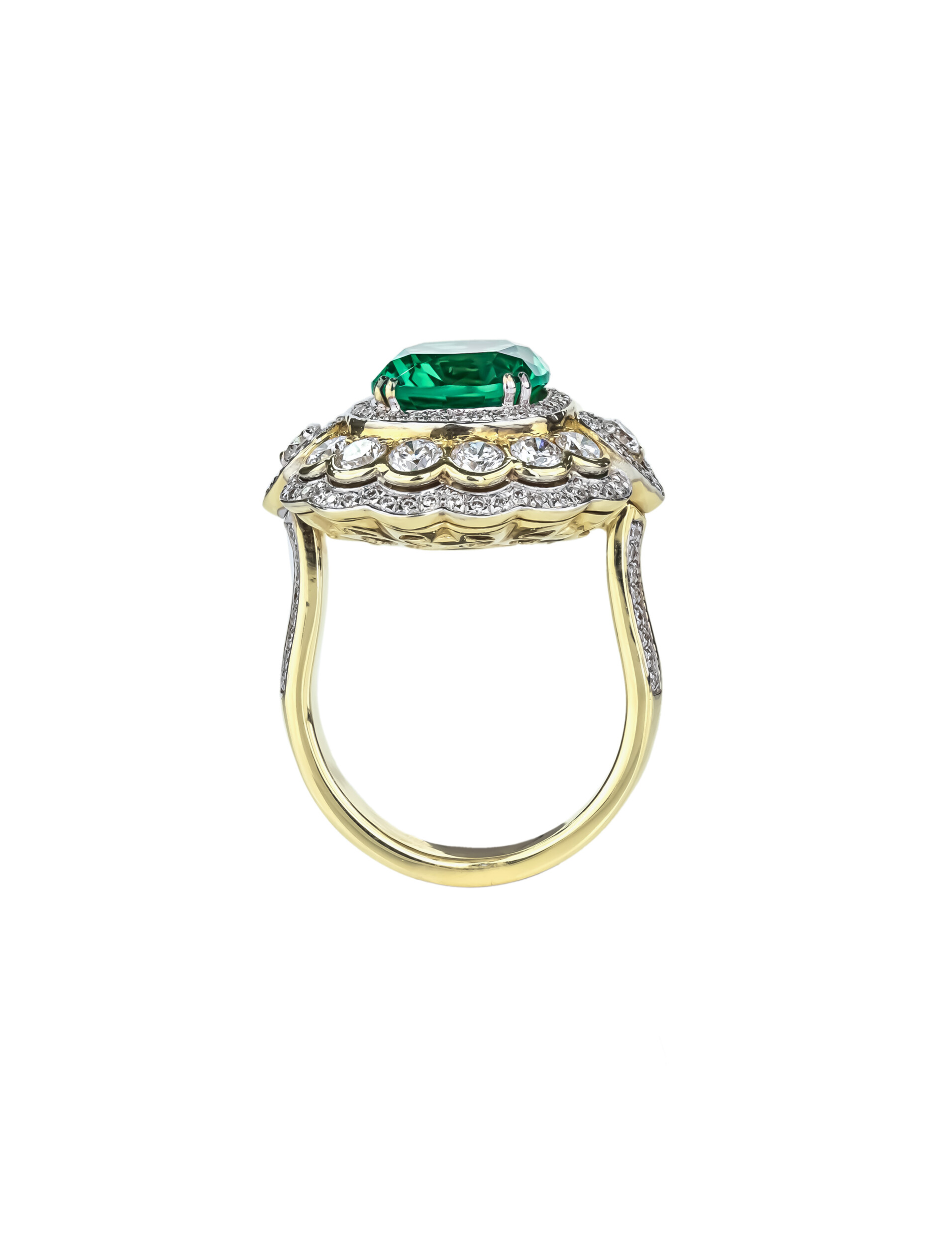 Кольцо из лимонного золота c бриллиантами и изумрудом