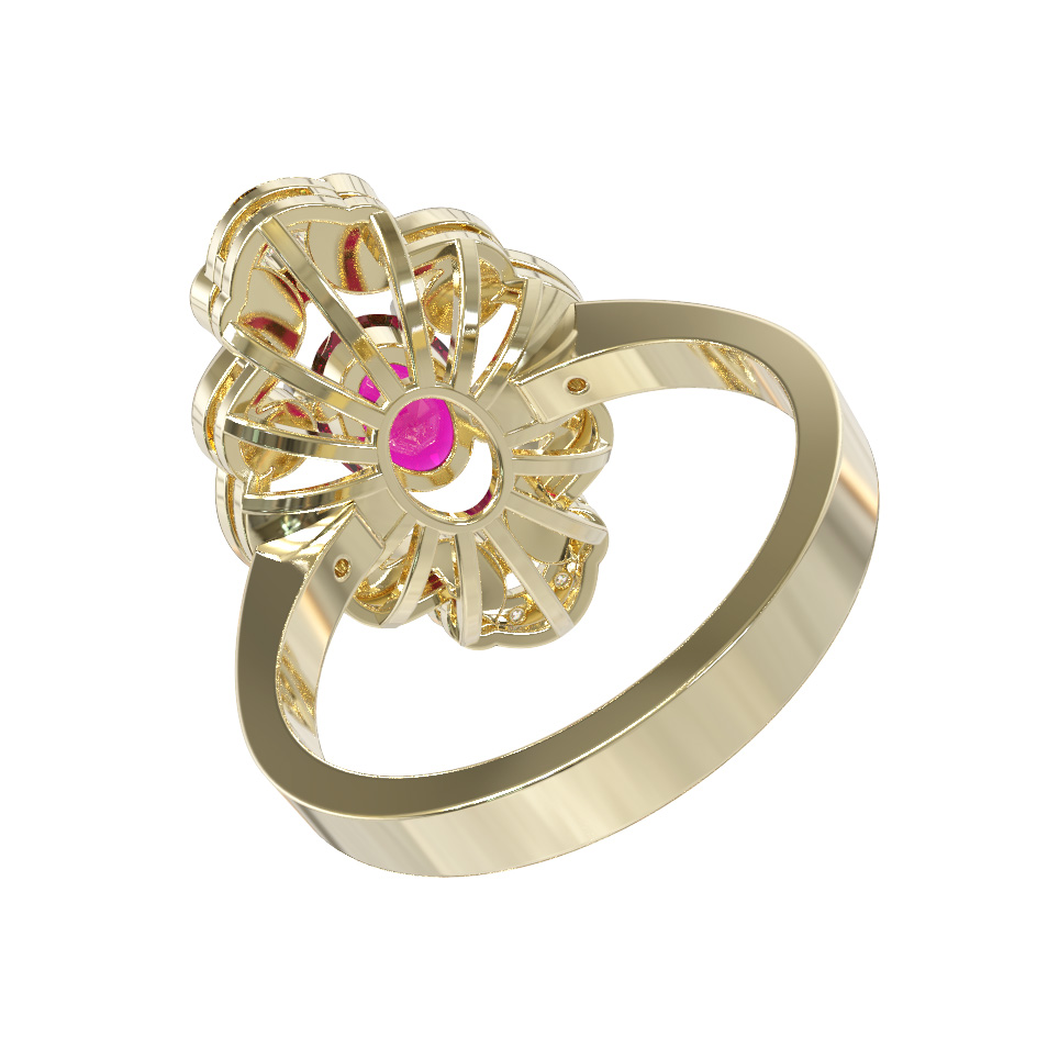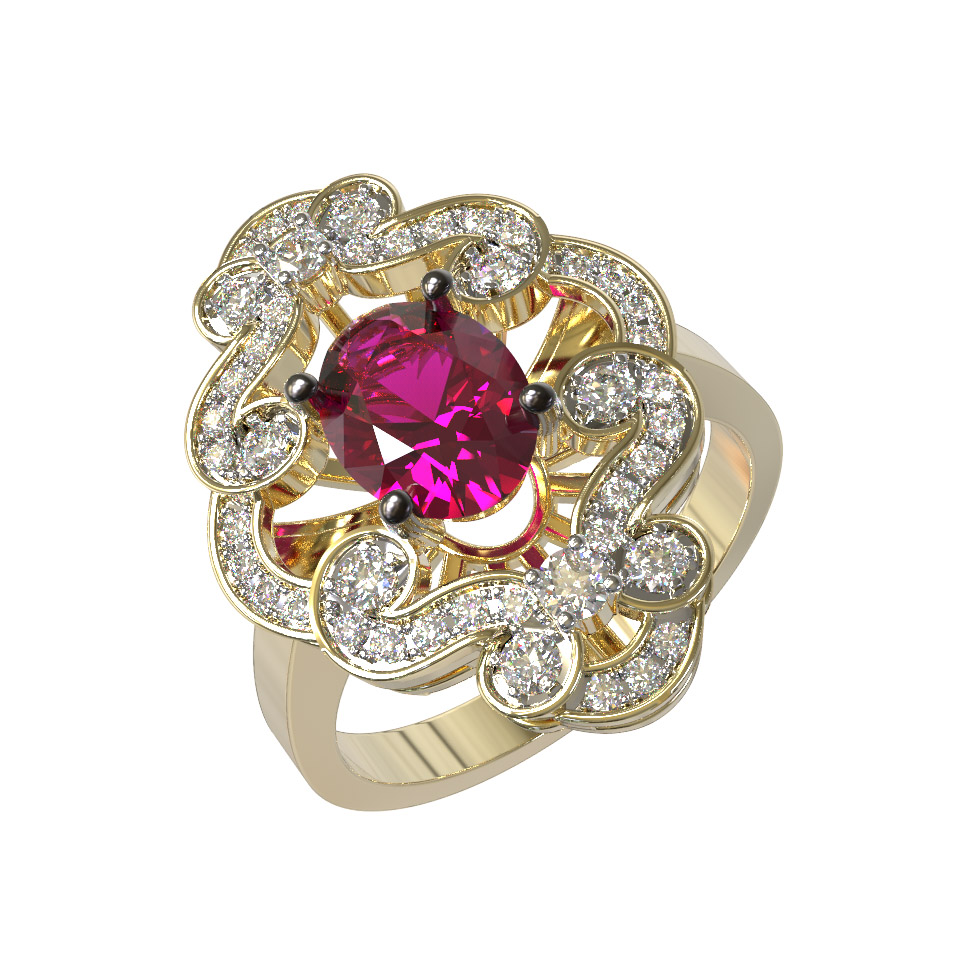 Кольцо из лимонного золота c бриллиантами и рубином
