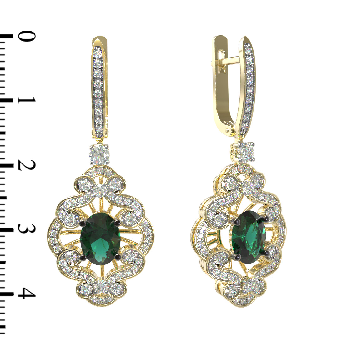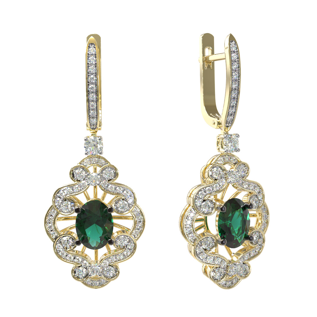 Серьги из лимонного золота c бриллиантами и изумрудом