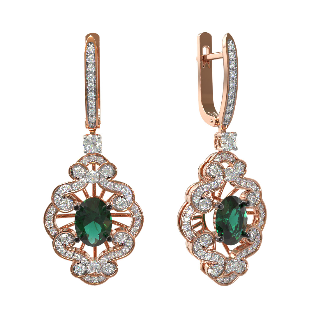Серьги из золота c бриллиантами и изумрудом
