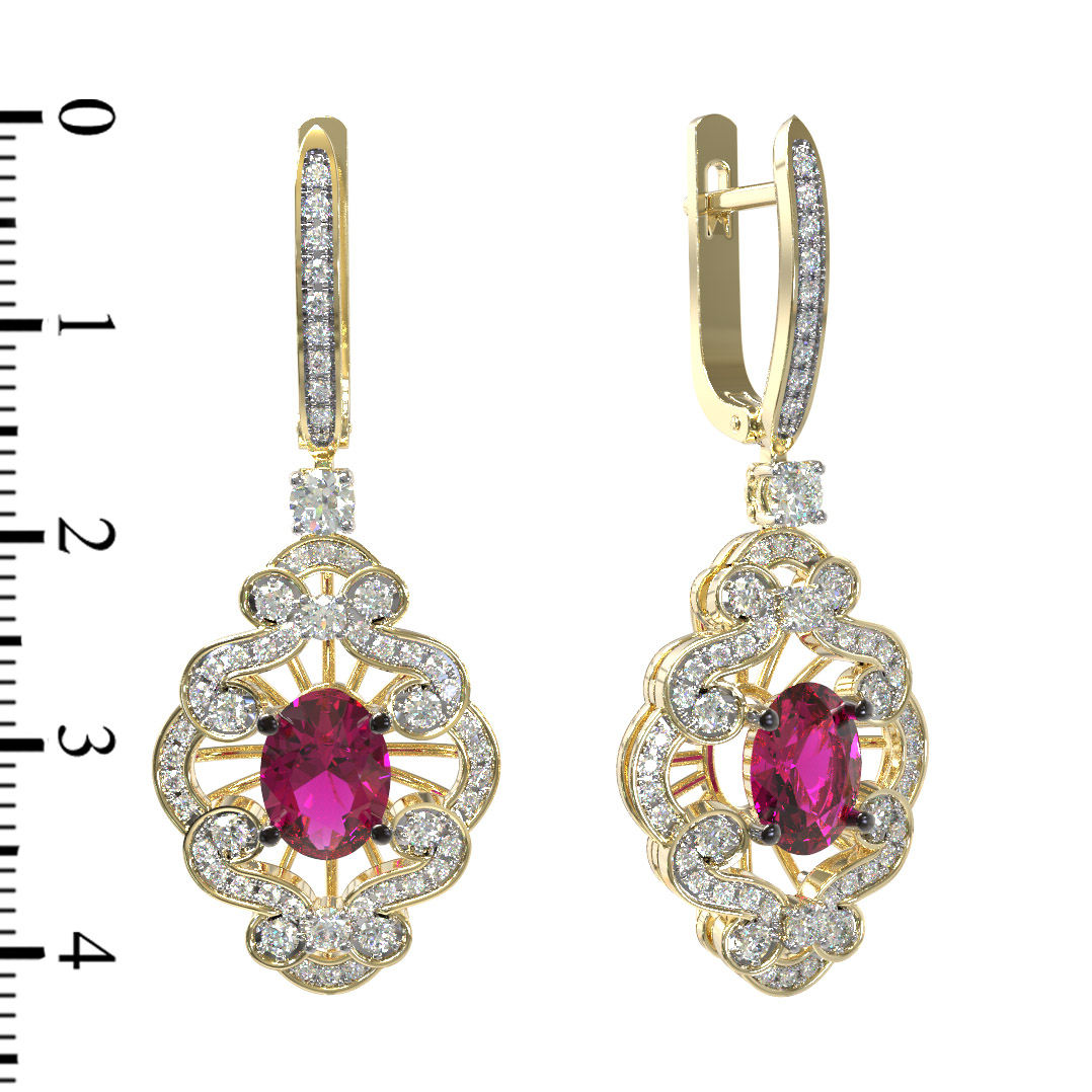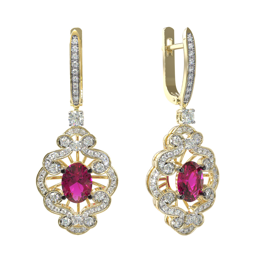 Серьги из лимонного золота c бриллиантами и рубином