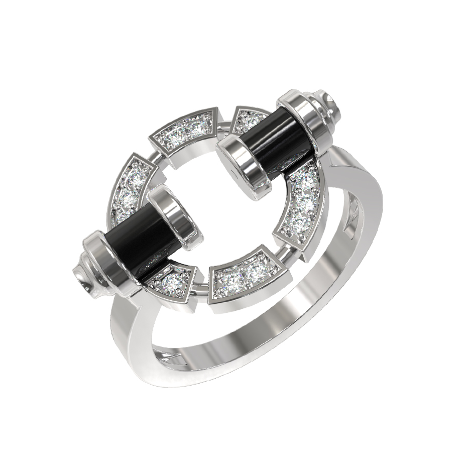 Кольцо из белого золота c бриллиантами и ониксом
