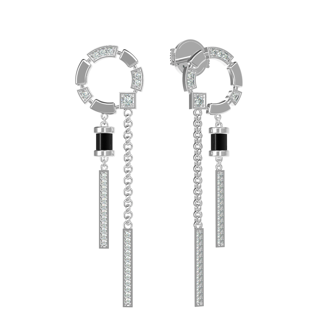 Серьги из белого золота c бриллиантами и ониксом