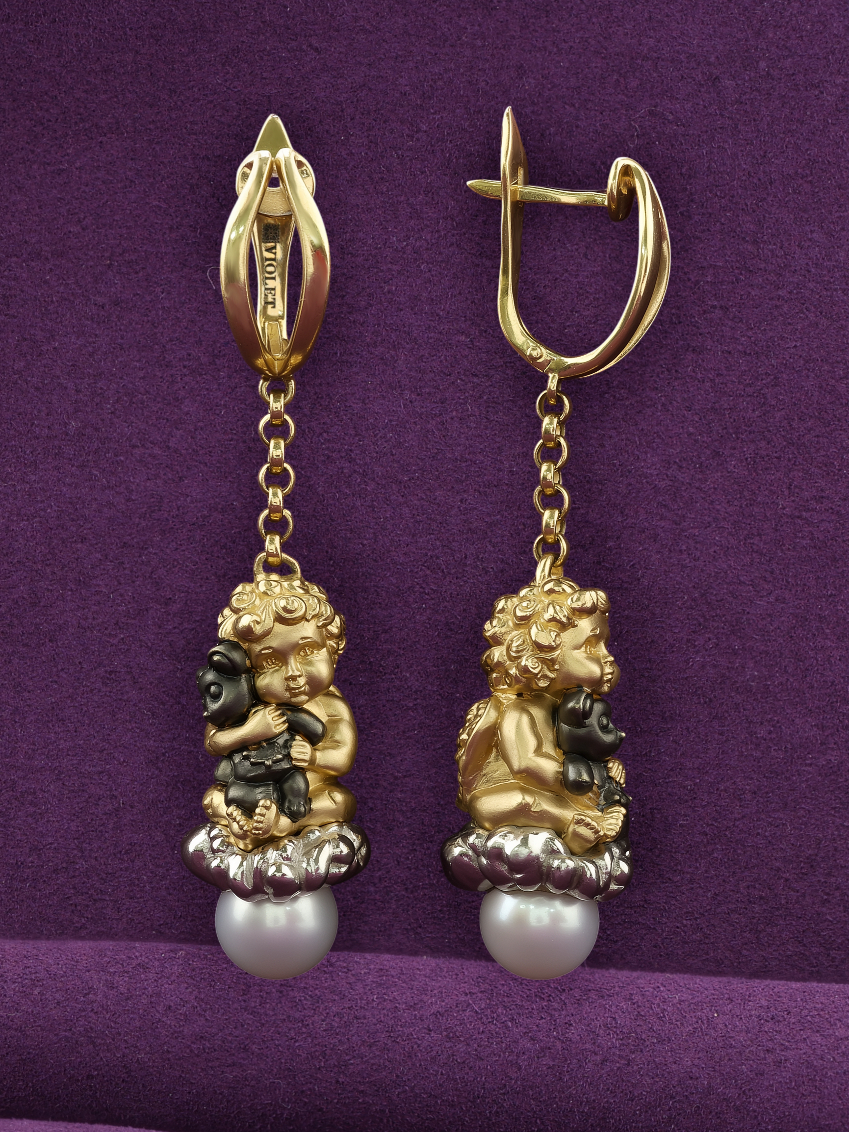 Серьги из лимонного золота c жемчугом