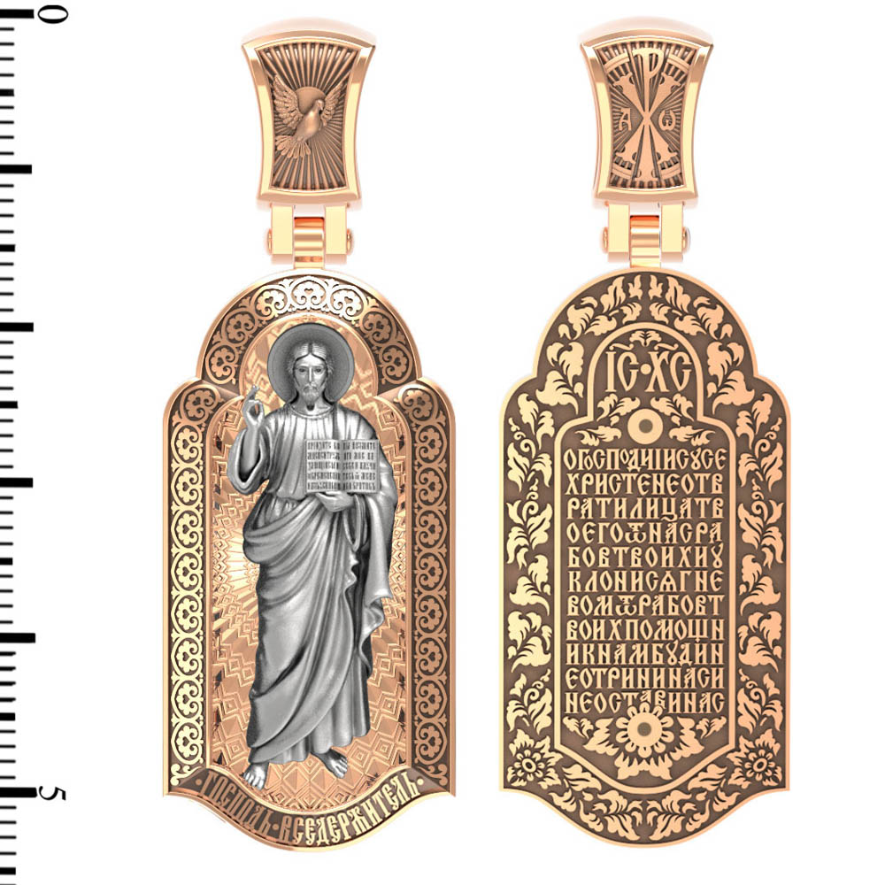 На лицевой стороне креста изображен Иисус Христос в образе Вседержителя, по-гречески «Пантократор». Это древнейший образ Спасителя, на котором Он представлен как властелин и правитель мира. Христос держит в руках Книгу, которая символизирует Книгу Бытия, то есть весь сотворенный Богом мир. В этой Книге судьбы всех людей, живущих на земле. Часто эту Книгу образно называют Книгой Жизни. Первое дошедшее до нас подобное изображение датируется VI веком и хранится в монастыре Святой Екатерины на горе Синай. Такие образы Христа с глубокой древности писались и в Палестине. Но Святая земля так часто подвергалась разграблению завоевателями, что древних икон там не осталось. Большинствоикон в храме Воскресения Христова были созданыв XIX веке.
