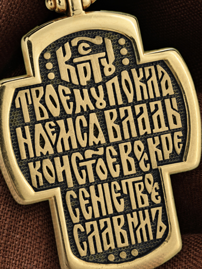 На оборотной стороне креста написана песнь: «Кресту Твоему поклоняемся, Владыко, и святое Воскресение Твое славим»