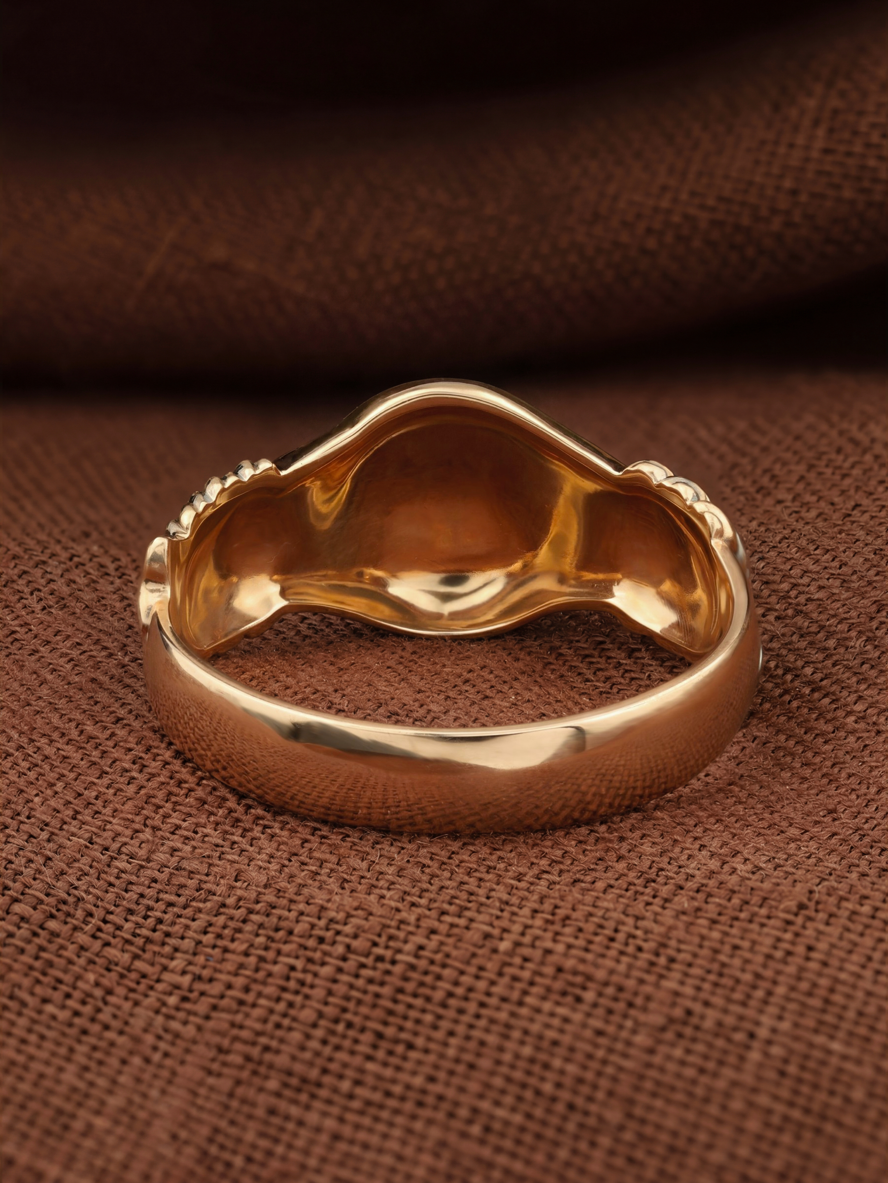 В центральной части лицевой стороны кольца изображен Крест. Господь сказал: кто хочет идти за Мною, отвергнись себя, и возьми крест свой, и следуй за Мною. Крест является символом жертвенной любви Всеблагого Бога к падшим людям, всепобеждающим духовным оружием христиан, основанием и средоточием церковной жизни. Иисус Христос, как искупительная жертва освобождения человечества от власти греха, умер крестной смертью и в третий день воскрес. Крест имеет четырехконечную форму с равными балками. Такого типа кресты существовали во многих дохристианских культурах и были в первую очередь использованы Церковью для выражения идеи христианского преобразования мира. Вокруг креста помещена молитва: «Спаси и Сохрани».