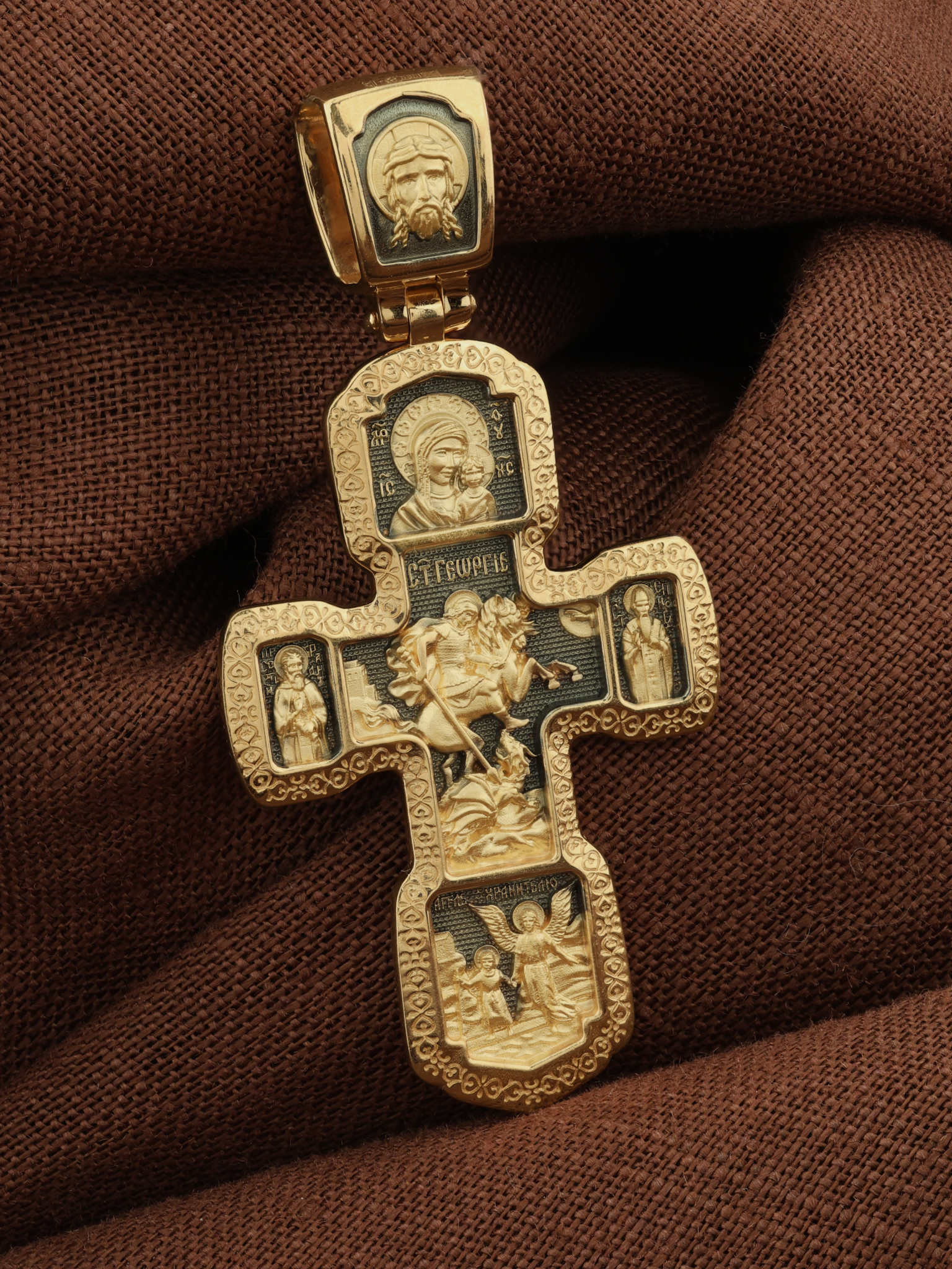 В центральной части оборота креста изображен Георгий Победоносец — покровителем и защитником воинов.