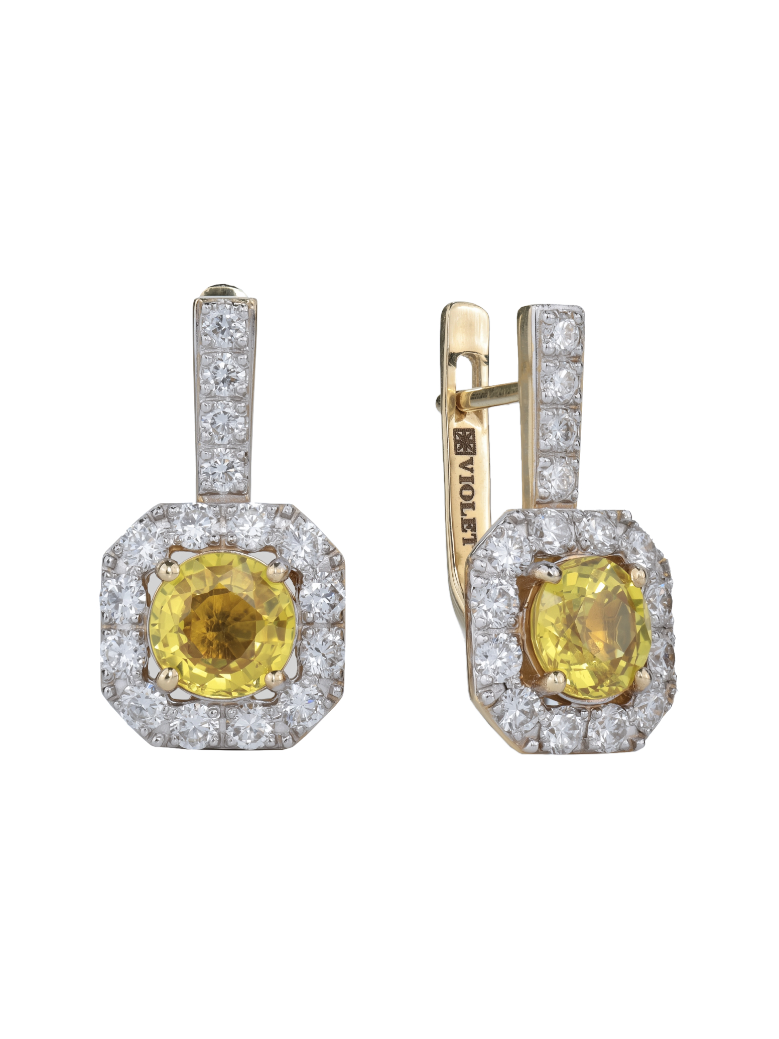 Серьги из лимонного золота c бриллиантами и сапфиром