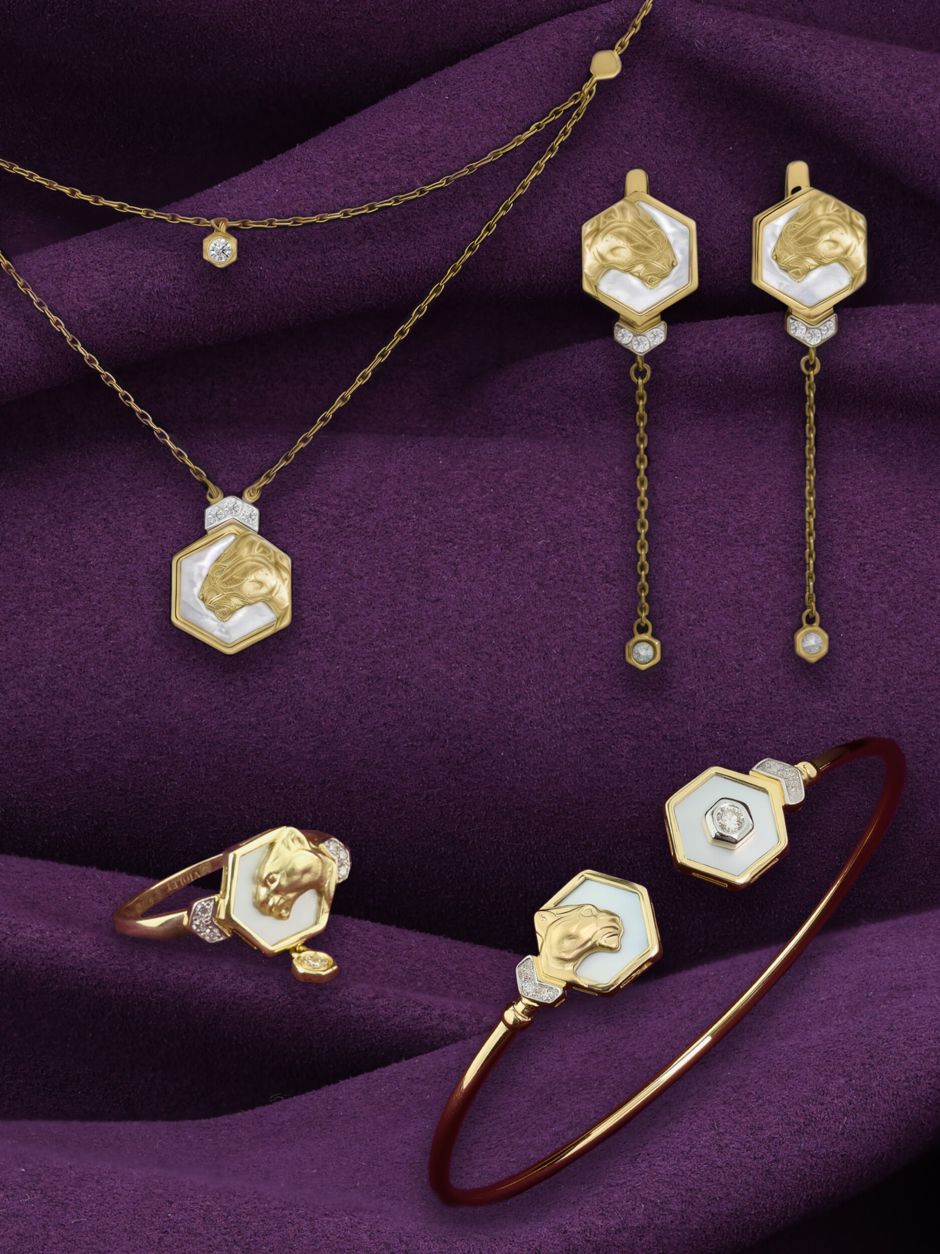 Браслет из лимонного золота c бриллиантами и перламутром