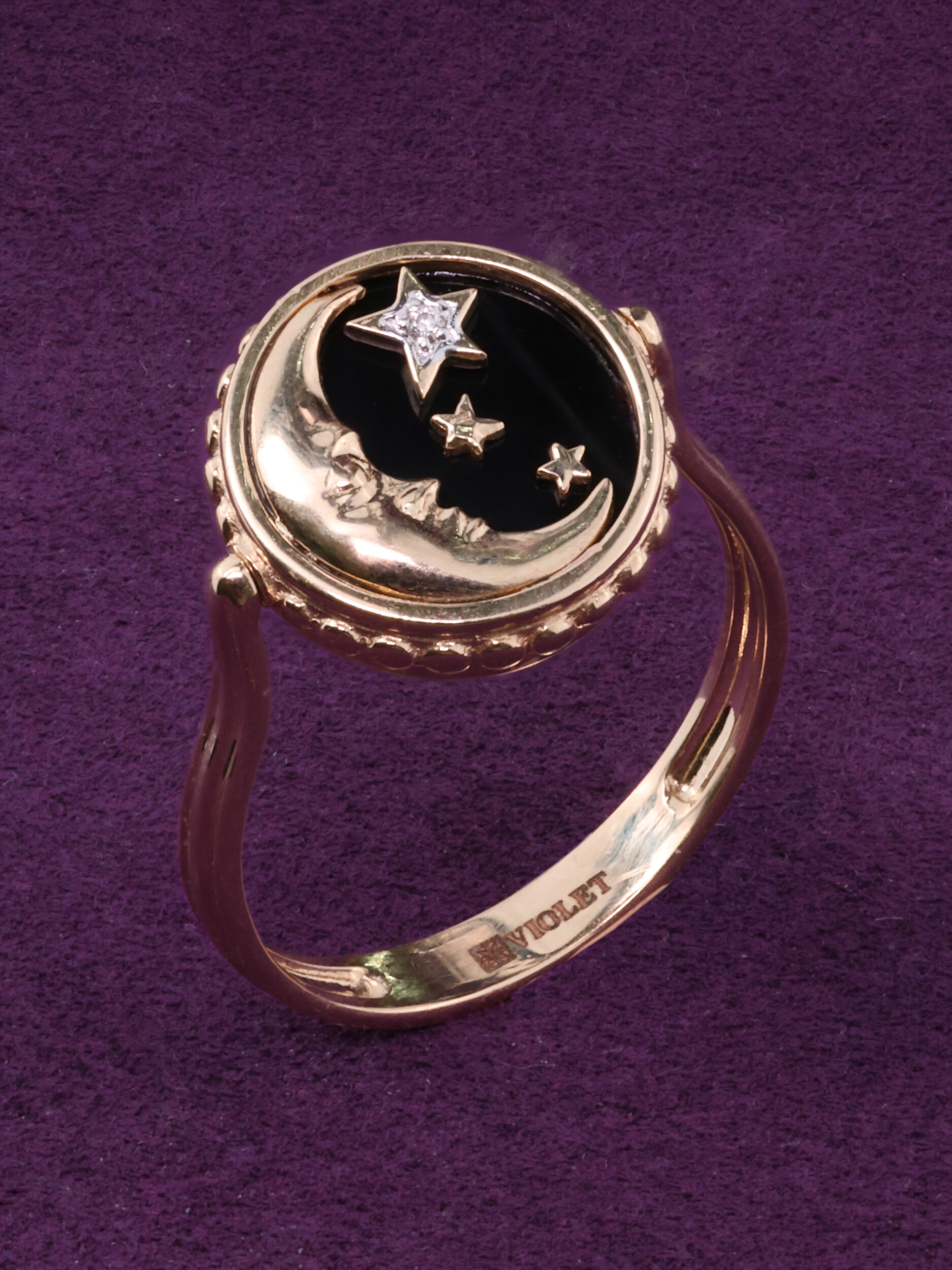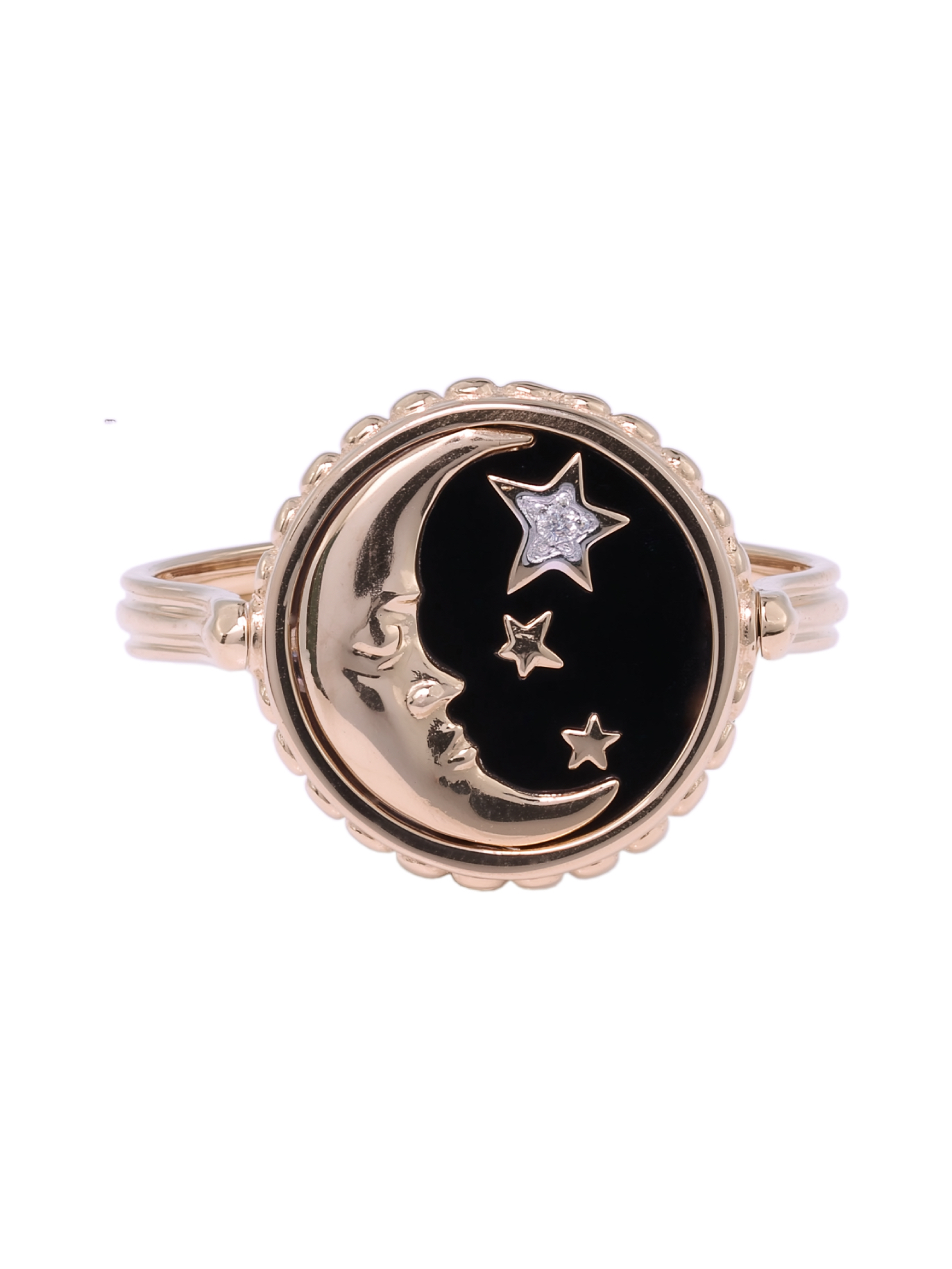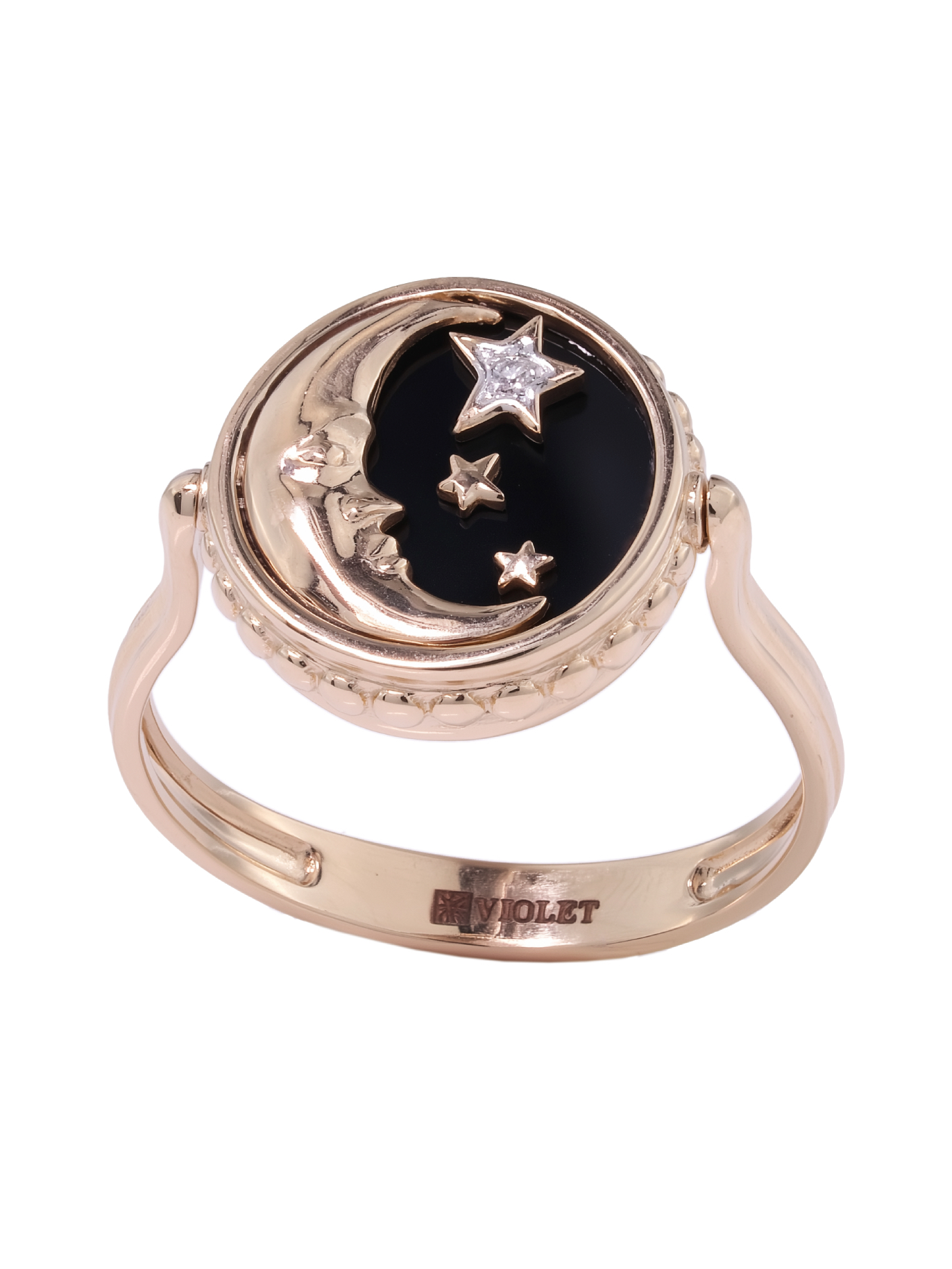 Кольцо из золота c бриллиантами, ониксом и перламутром