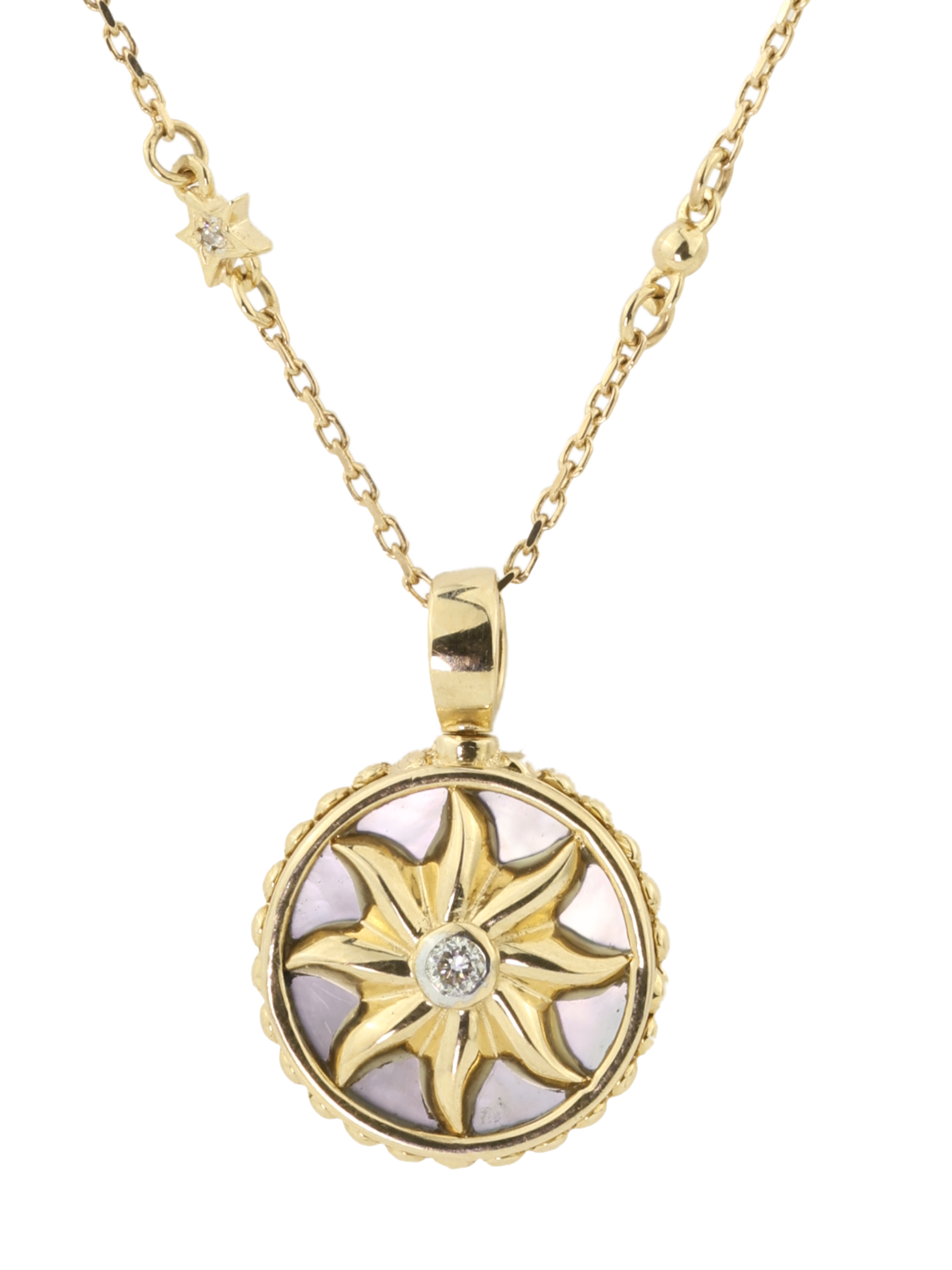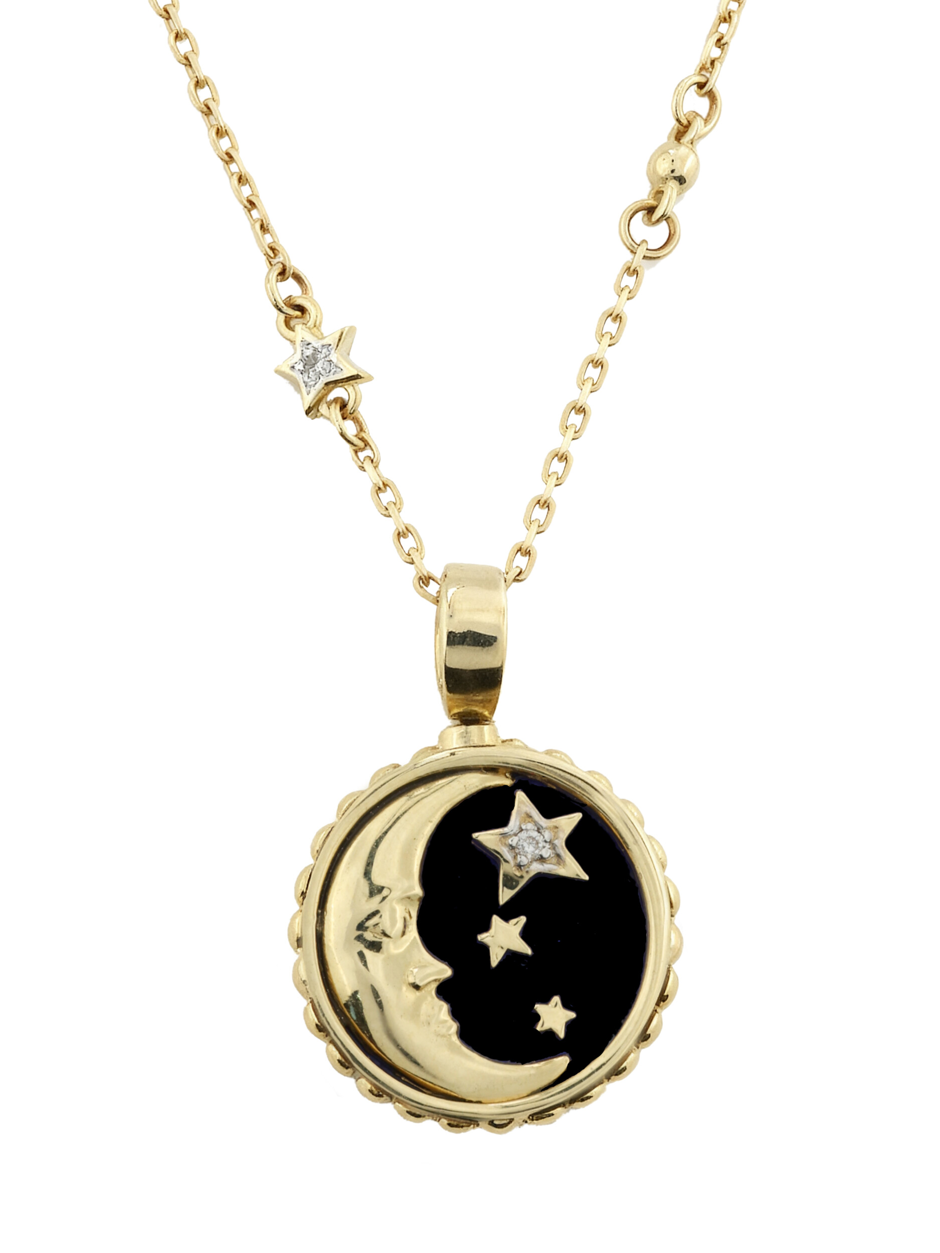 Колье из лимонного золота c бриллиантами, ониксом и перламутром