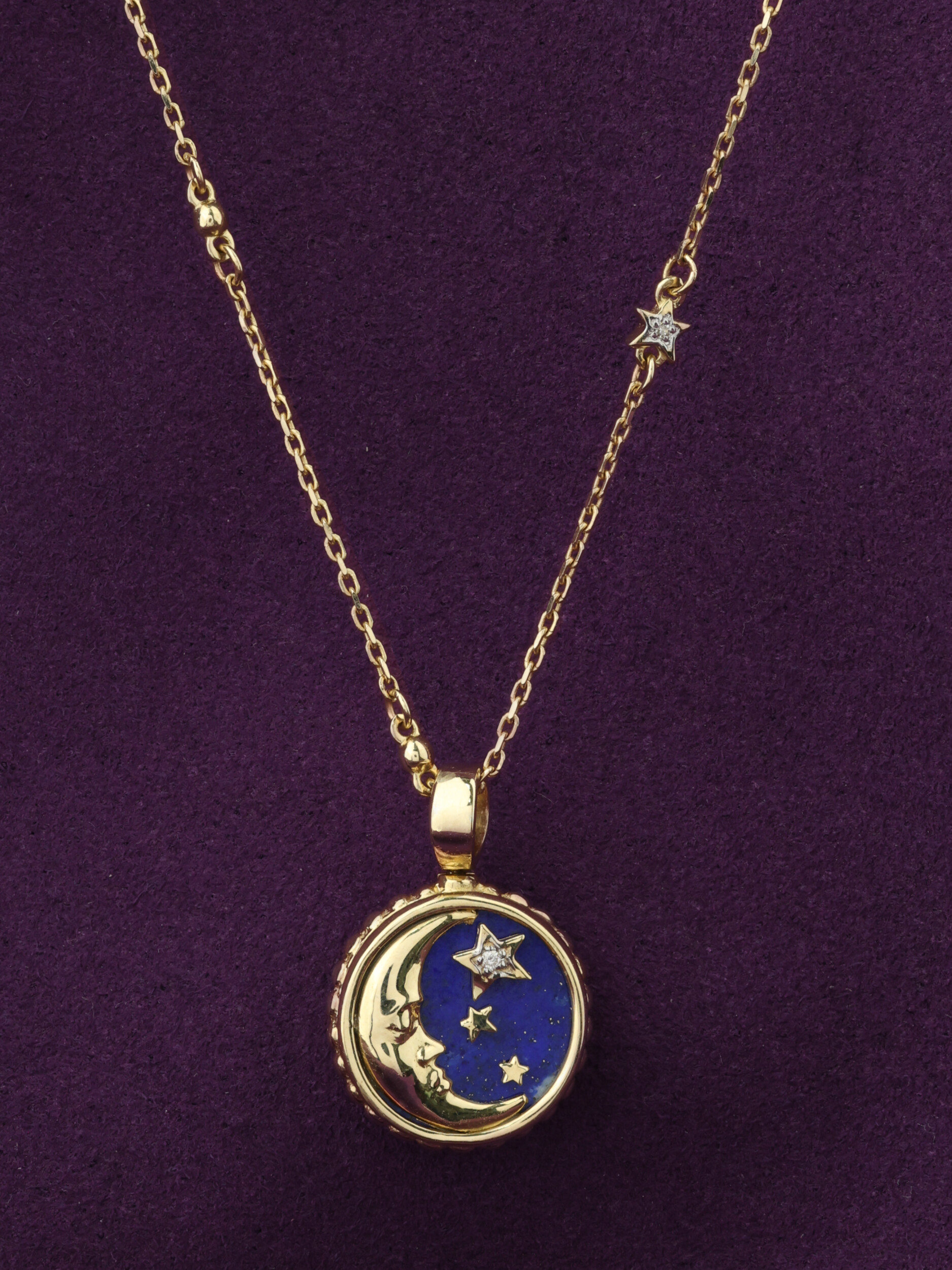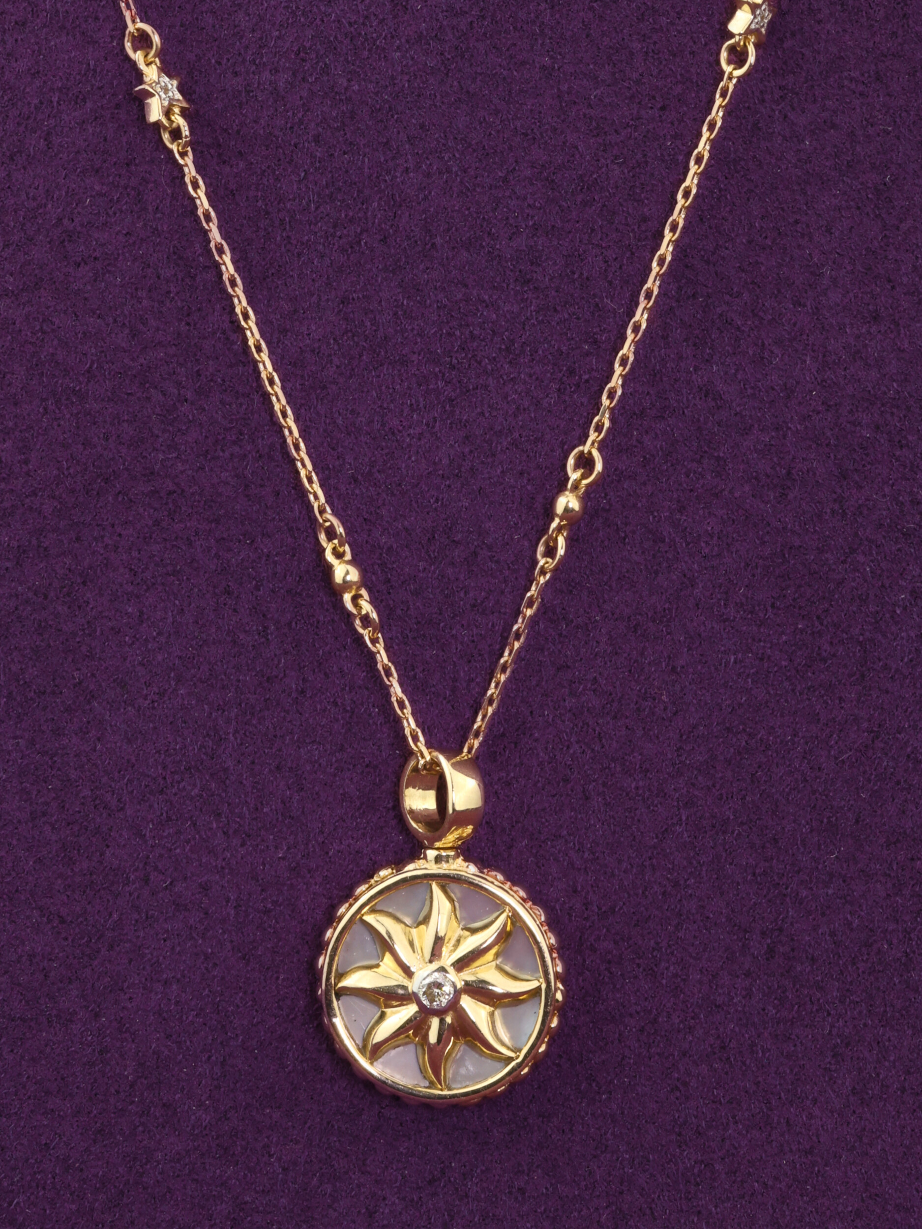 Колье из лимонного золота c бриллиантами, лазуритом и перламутром