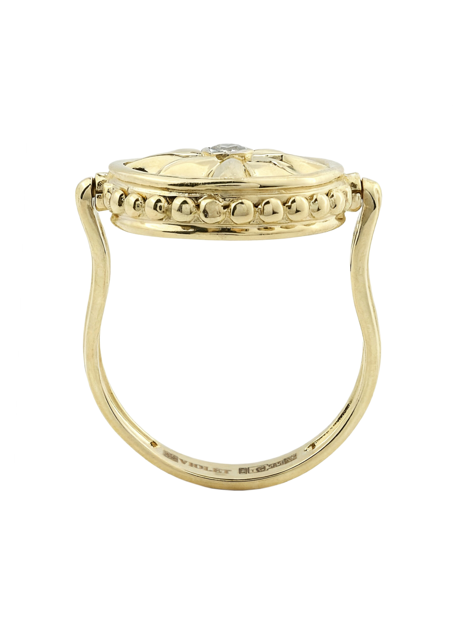 Кольцо из лимонного золота c бриллиантами, ониксом и перламутром