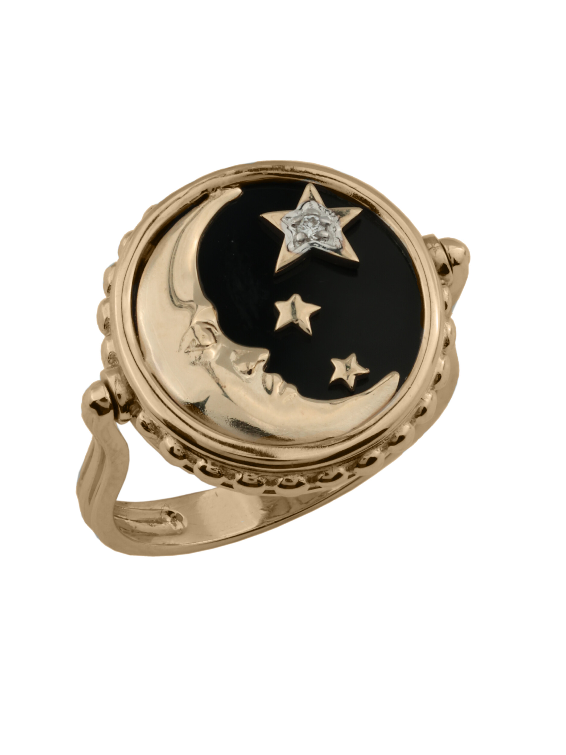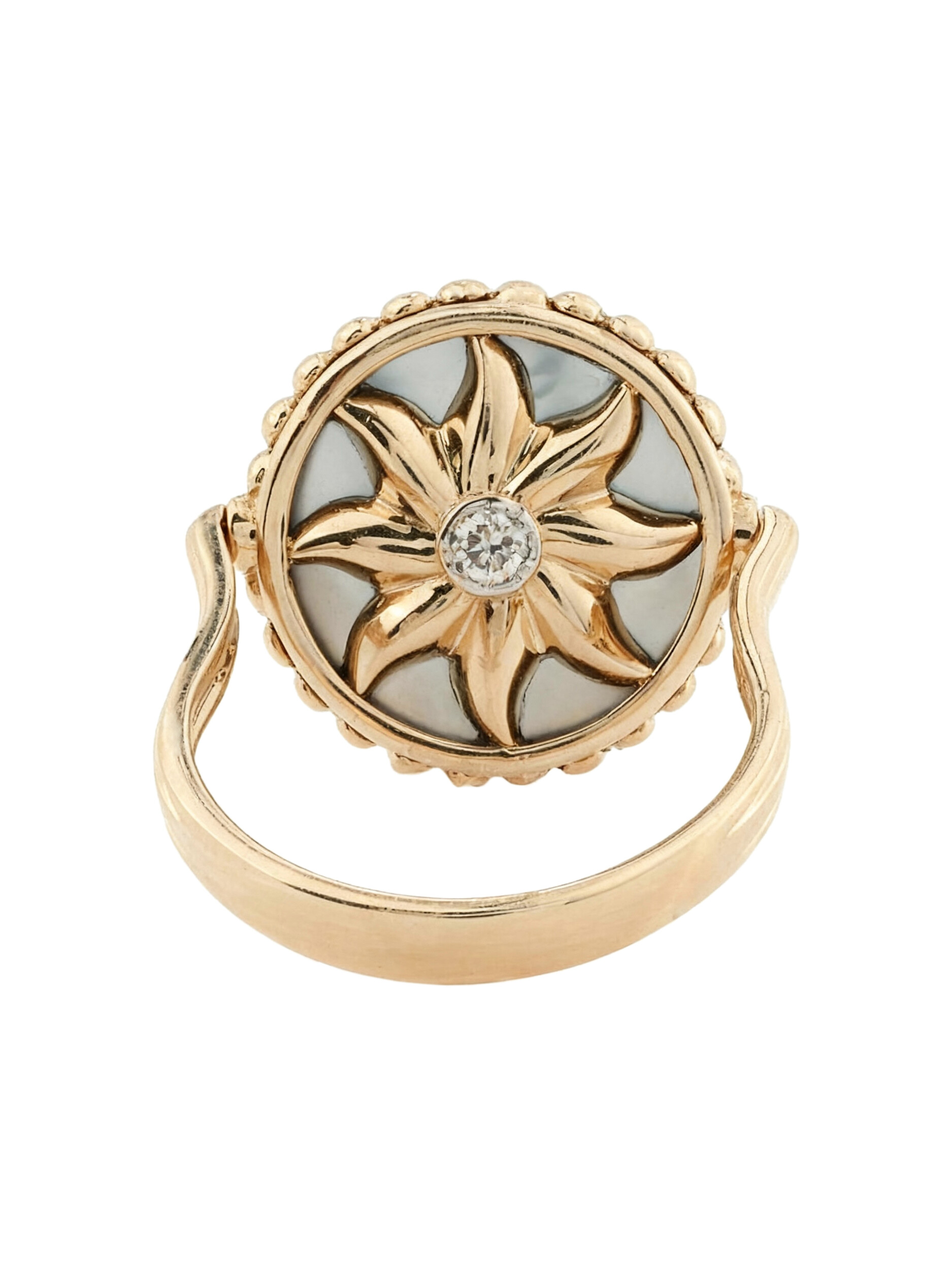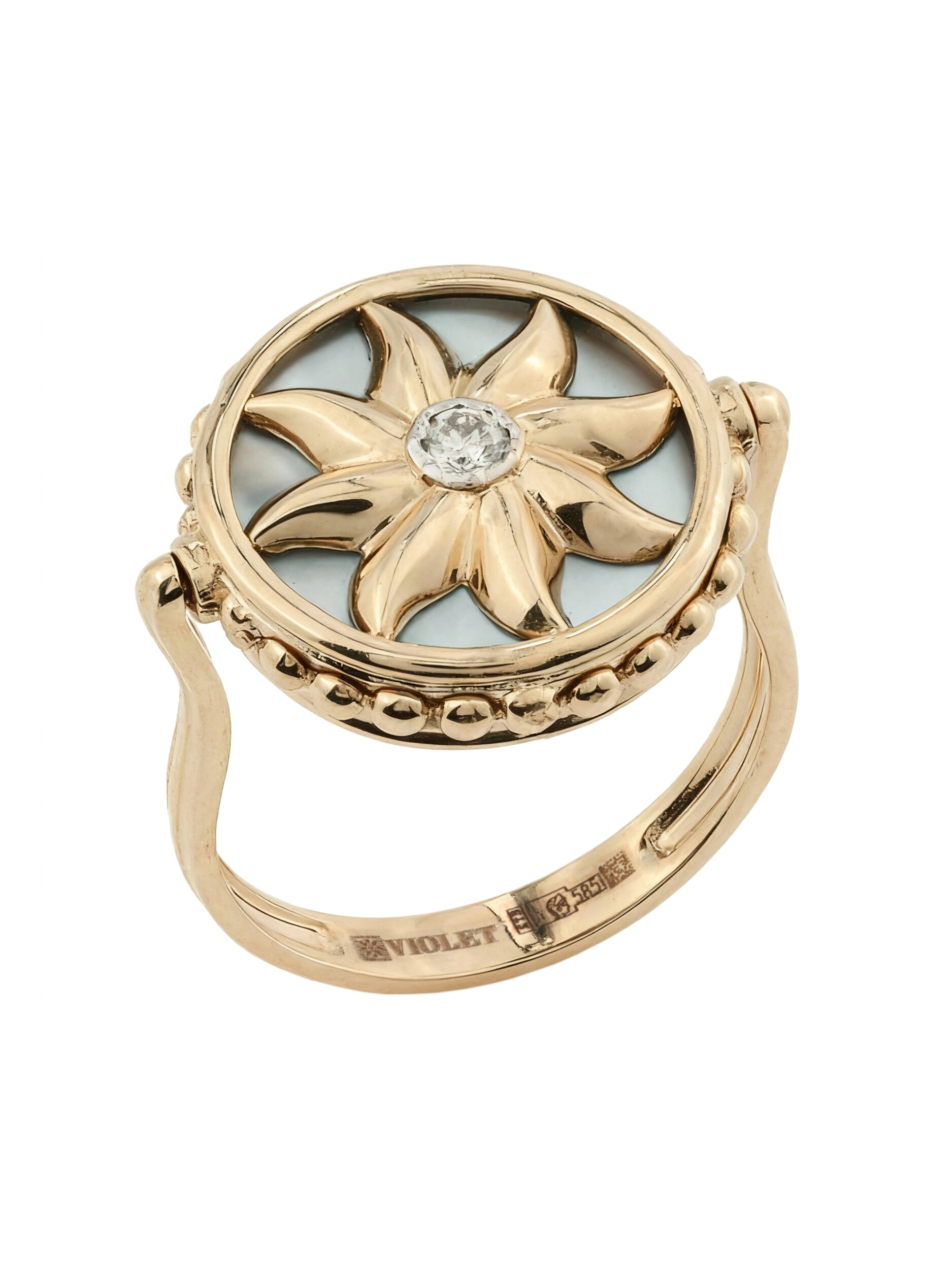 Кольцо из золота c бриллиантами, ониксом и перламутром