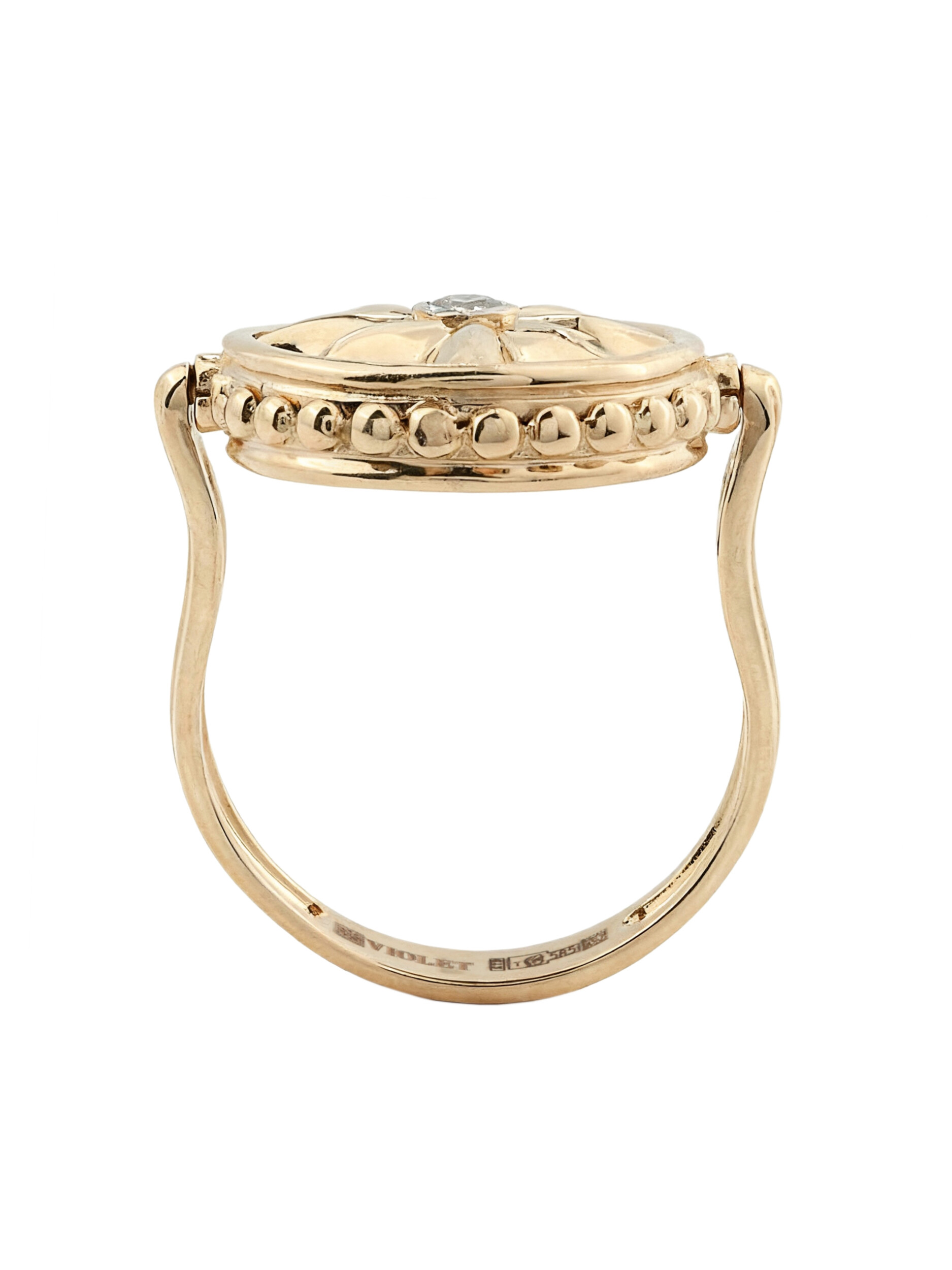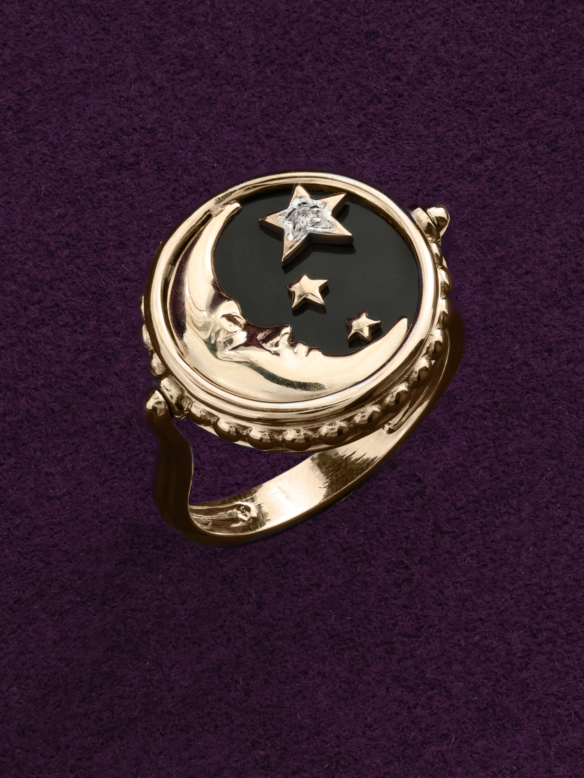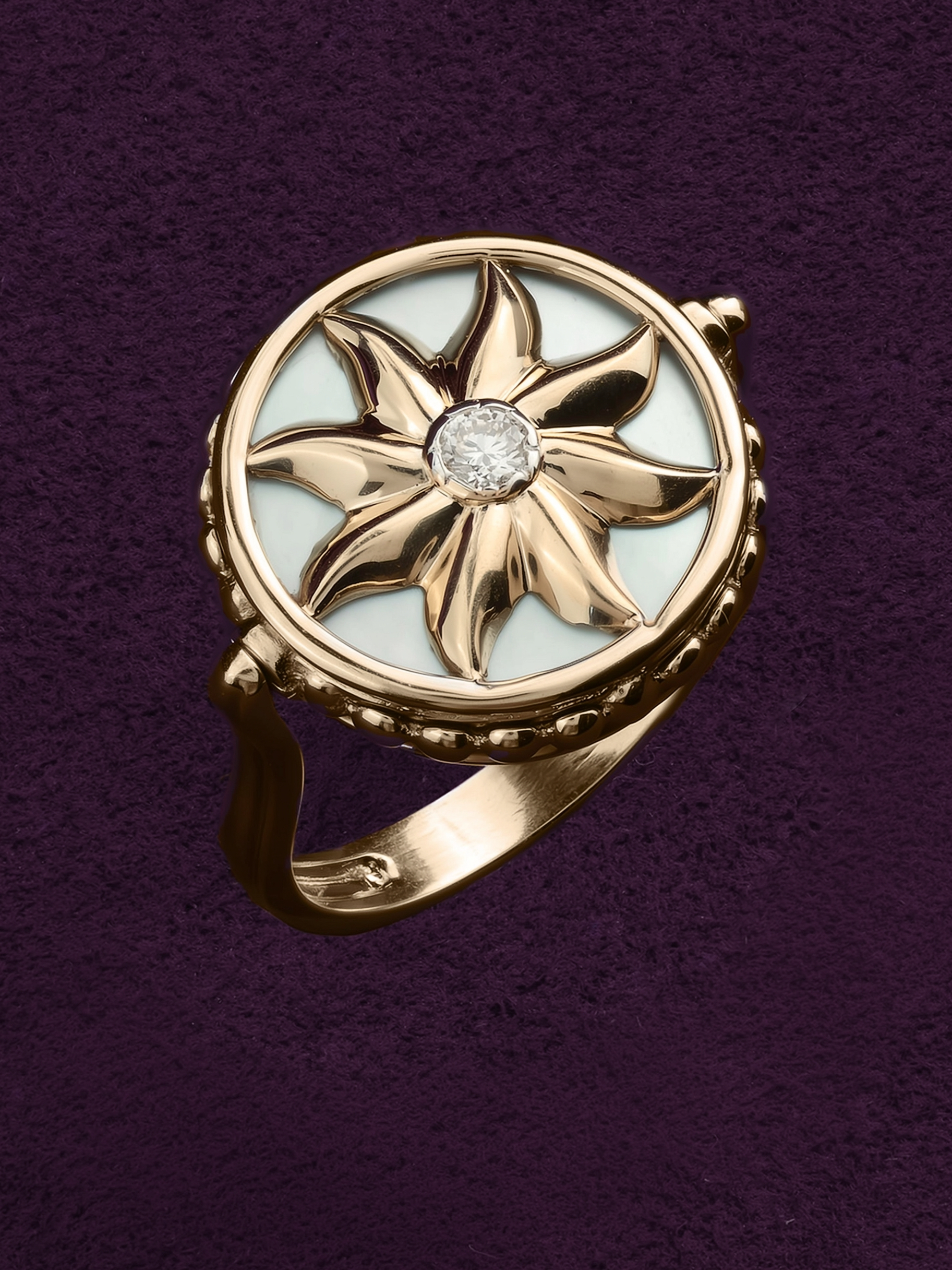 Кольцо из золота c бриллиантами, ониксом и перламутром
