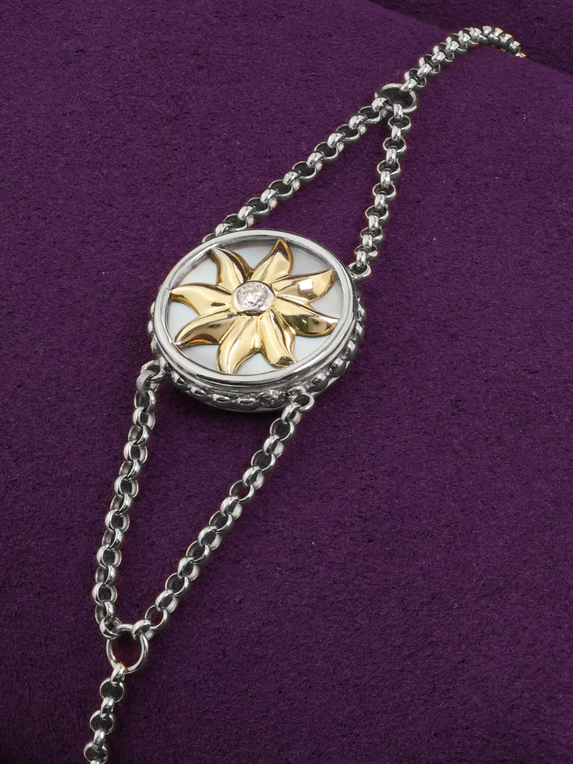 Браслет из белого золота c бриллиантами, ониксом и перламутром