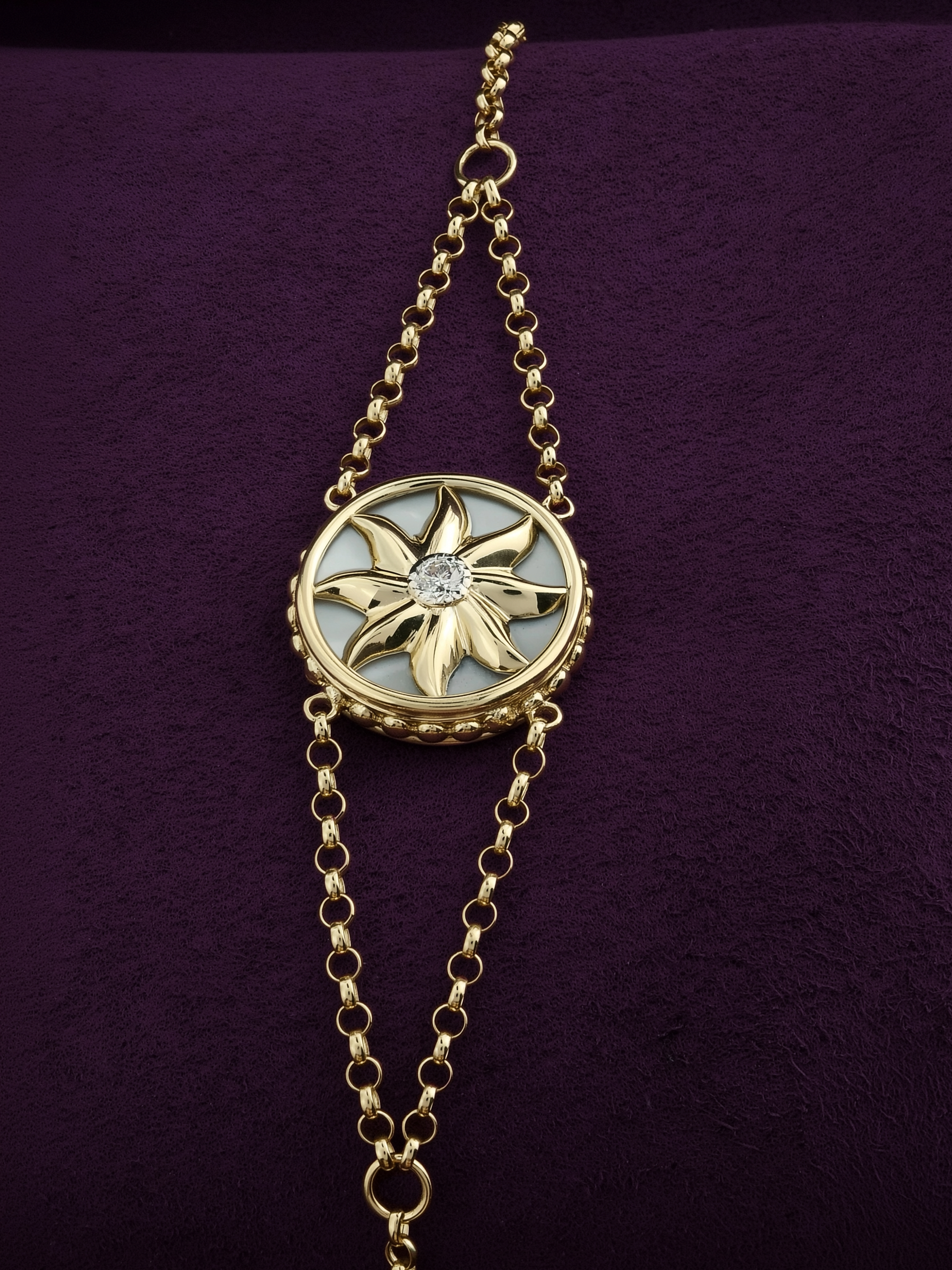 Браслет из лимонного золота c бриллиантами, лазуритом и перламутром