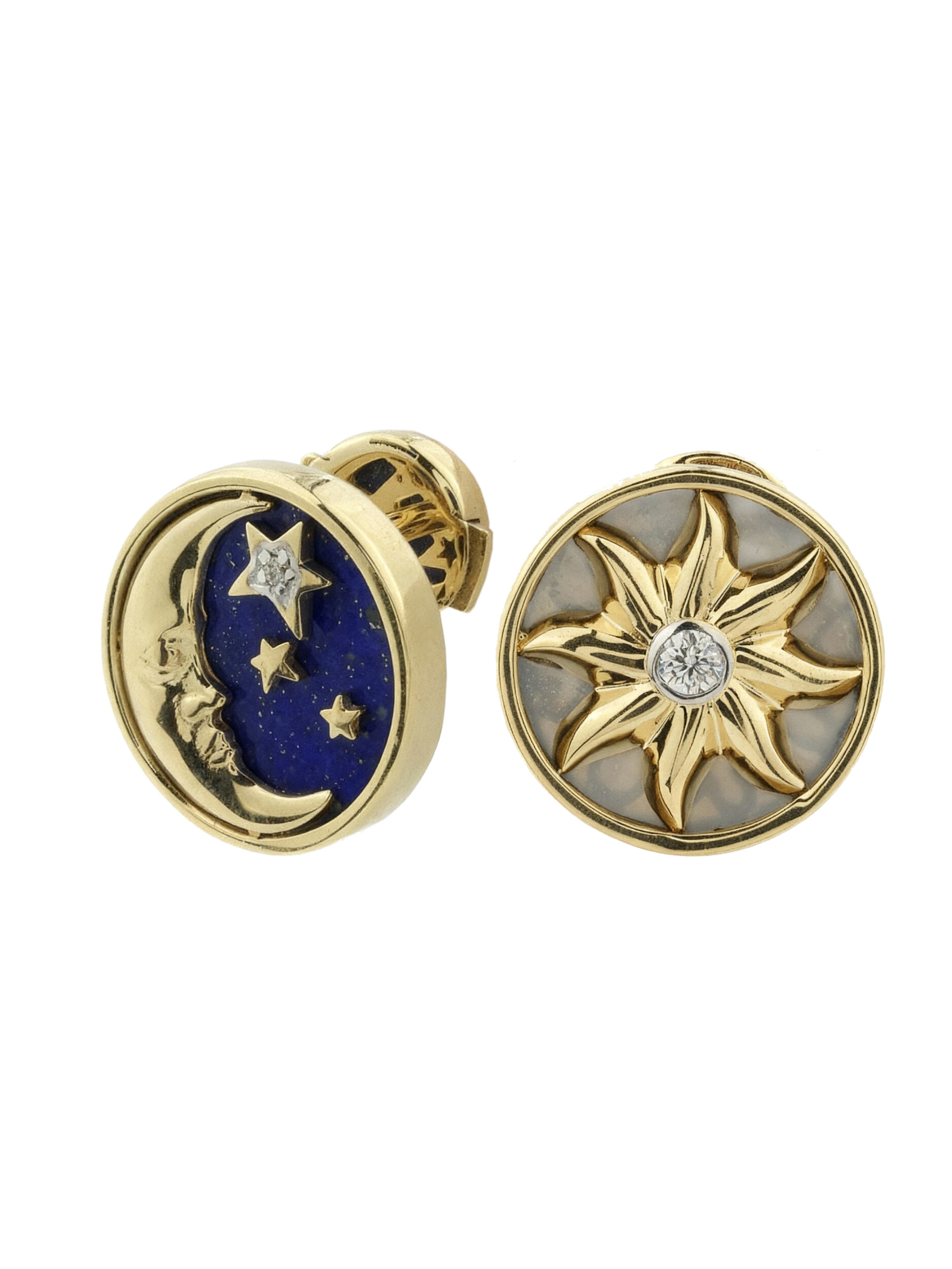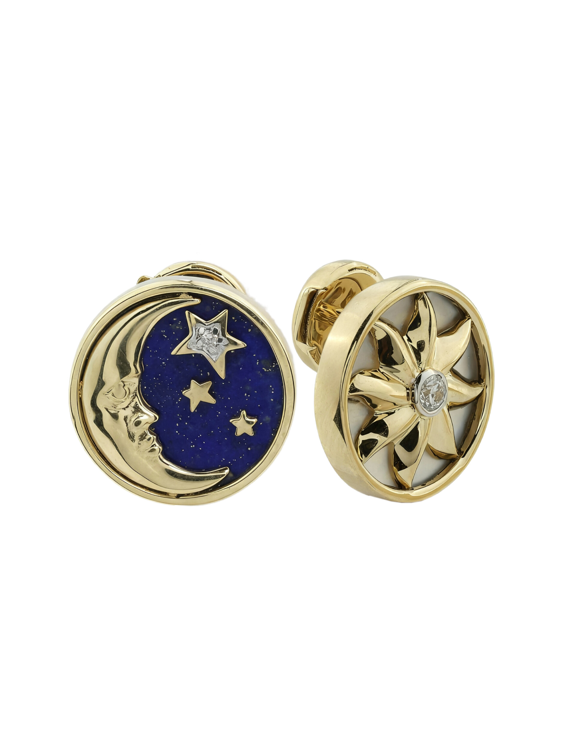 Серьги из лимонного золота c бриллиантами, лазуритом и перламутром