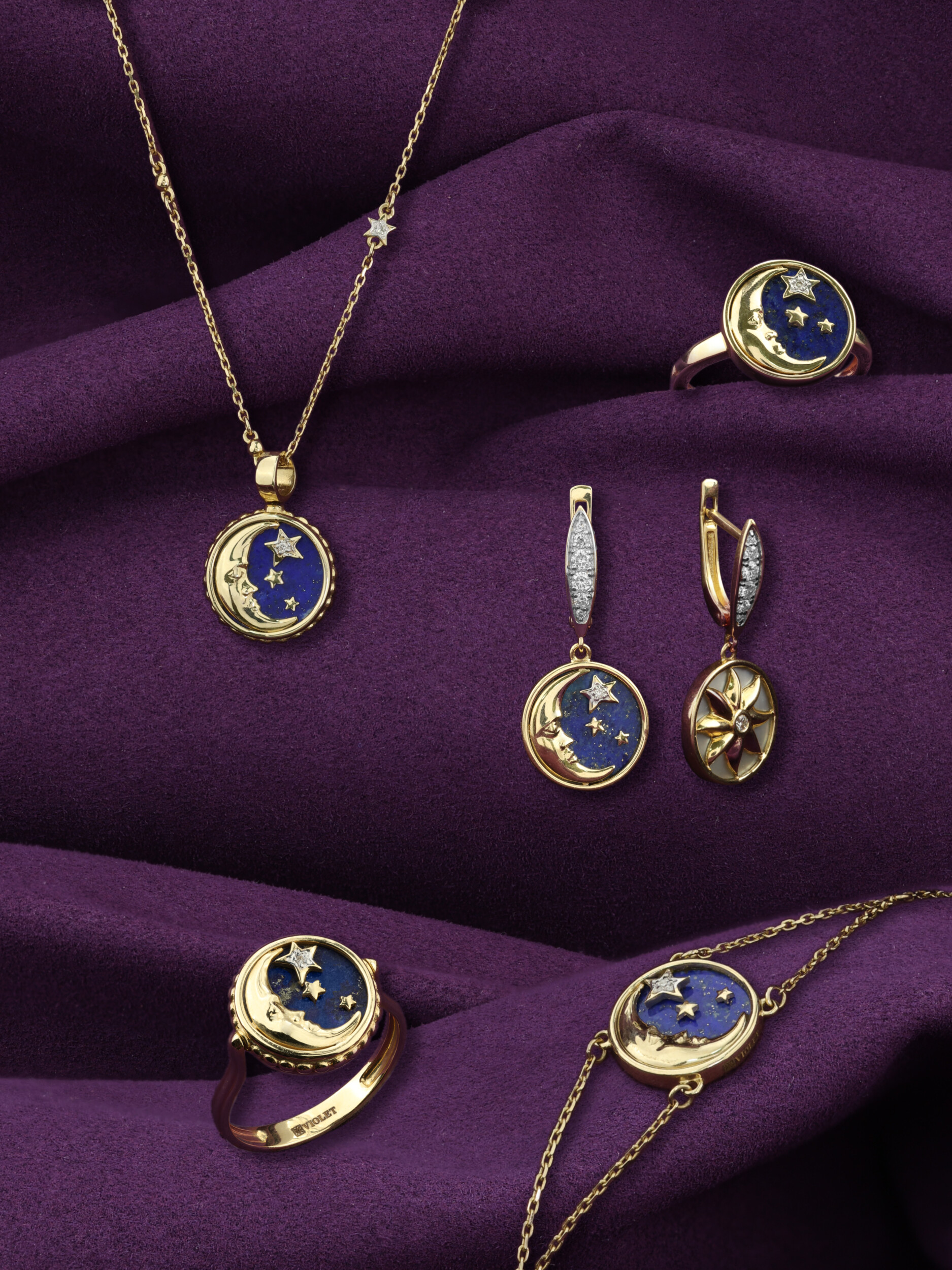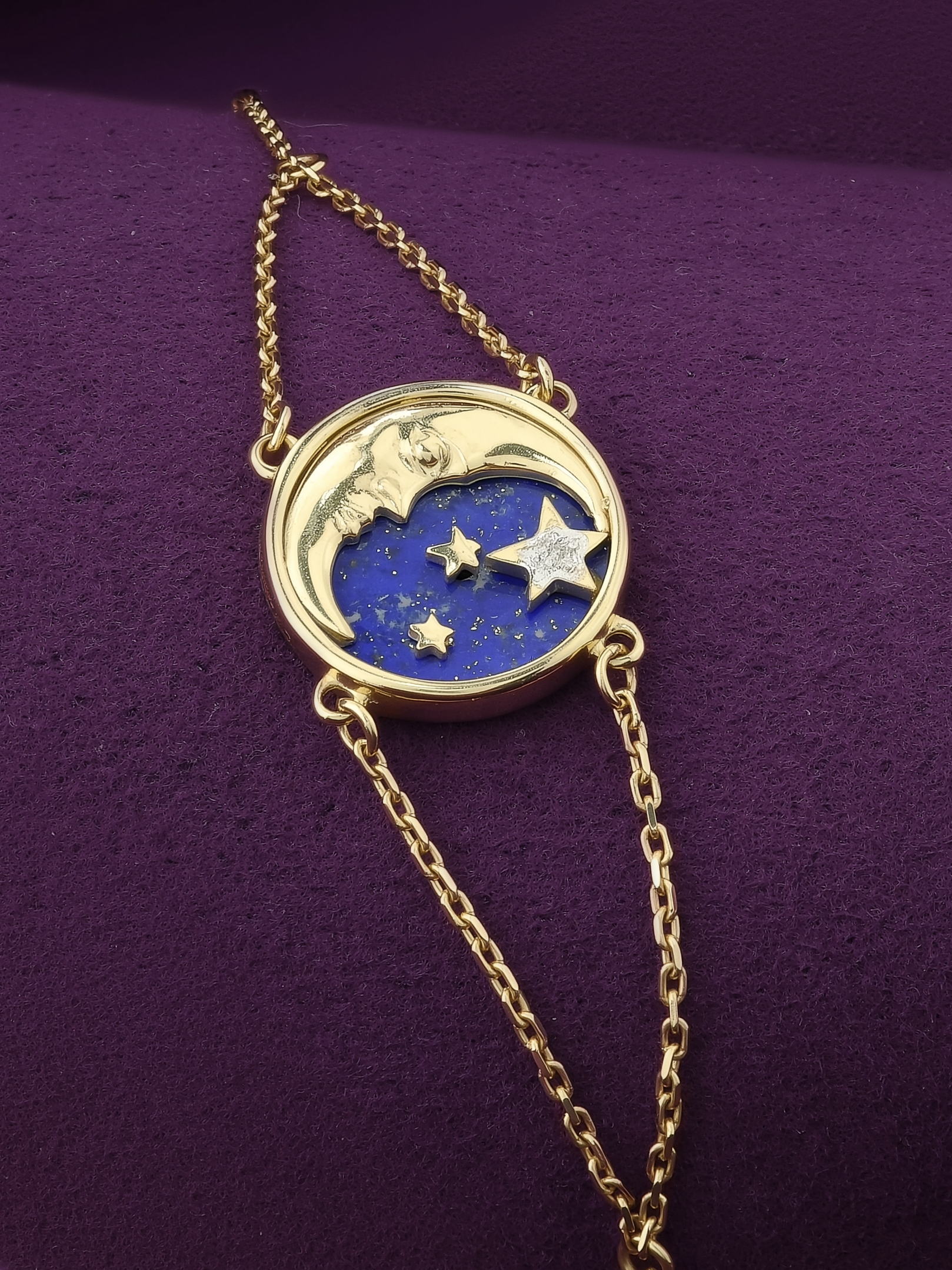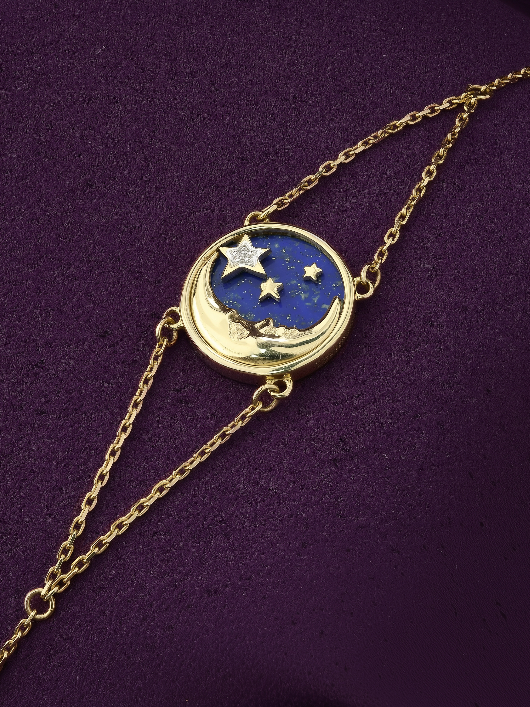 Браслет из лимонного золота c бриллиантами и лазуритом