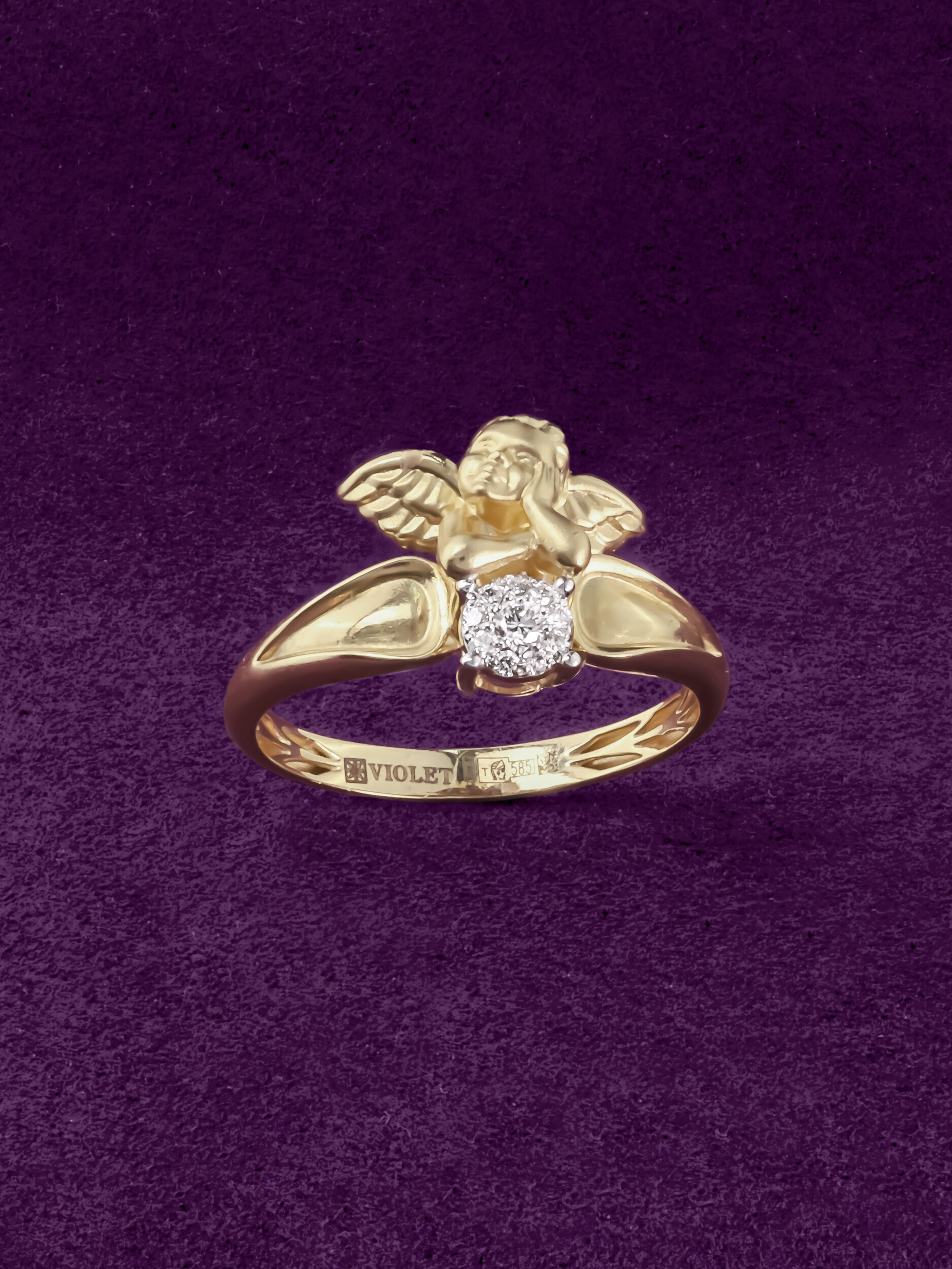 Кольцо из лимонного золота c бриллиантами