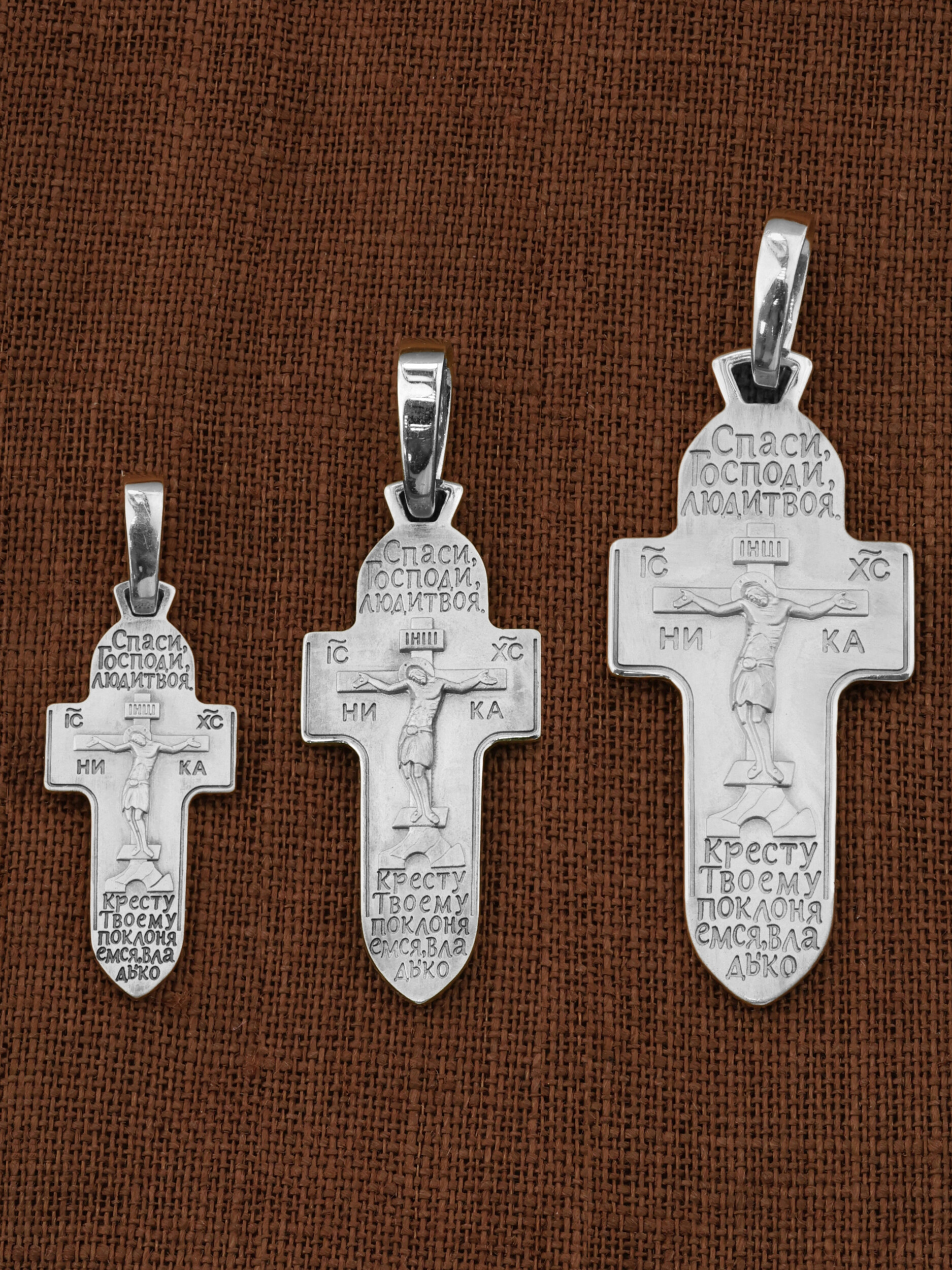 На кресте размещены слова молитвы: «Спаси, Господи, люди твоя» и «Кресту Твоему поклоняемся, Владыко».